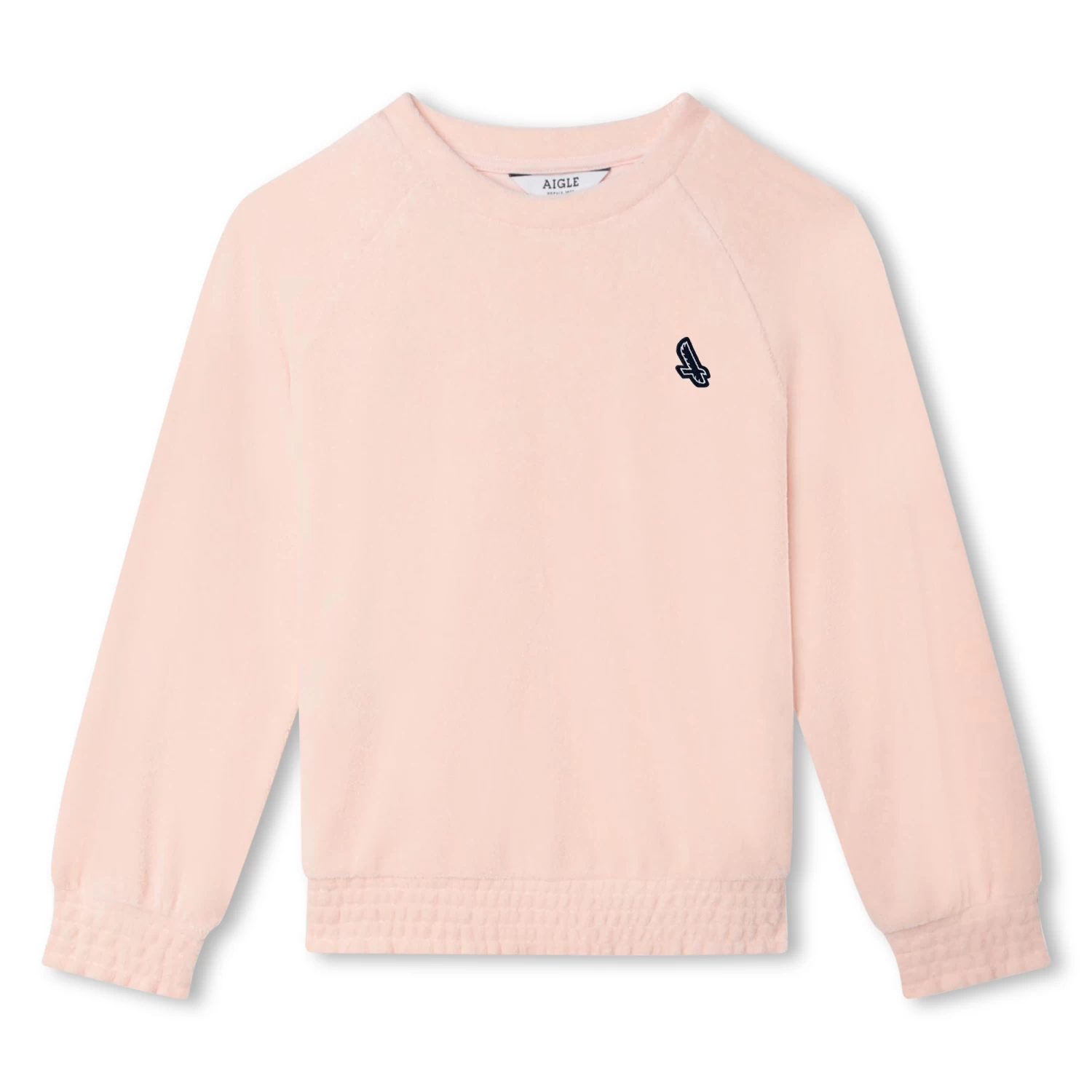 Il est doux, il est confortable. Oui, ce sweat-shirt en éponge Aigle a tout pour plaire. Et ce ne sont pas les filles adeptes du rose qui diront le contraire ! Elles apprécieront les poignets et la base élastiqués. à porter avec le short coordonné.