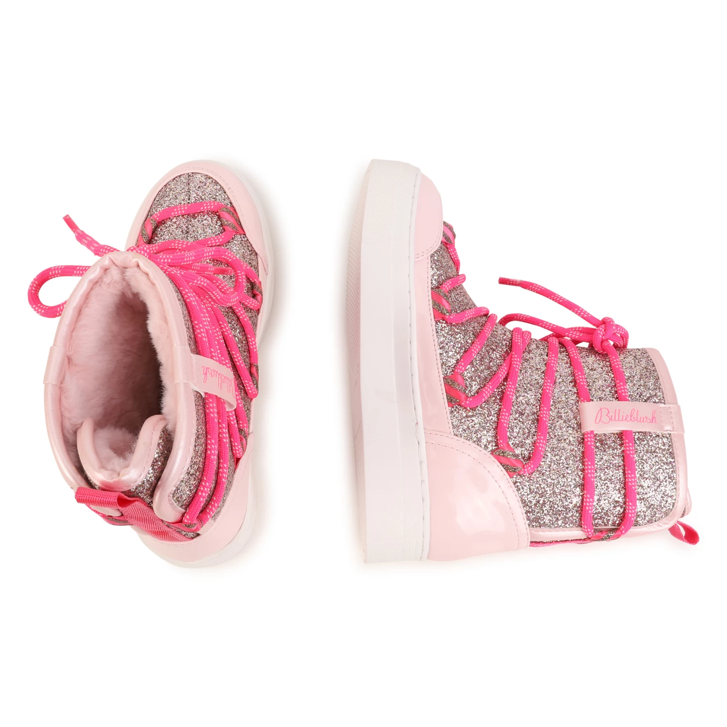 Faciles à chausser, ces après-ski pailletés Billieblush sont munis d’une fermeture à lacets avec passants. Ils présentent une doublure en polaire et une semelle intérieure en cuir de chèvre avec un tannage minéral. Ils sont vendus en boîte. Contient des parties non textiles d’origine animale.