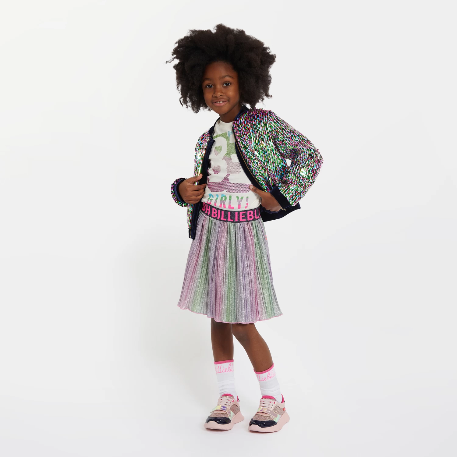 Ce blouson en velours Billieblush se caractérise par une confection en polyester et élasthanne. Il est intégralement recouvert de sequins. Il présente des poignets et une taille élastiqués ainsi qu’une fermeture zippée sur le devant. Il est disponible à partir du 3 ans.