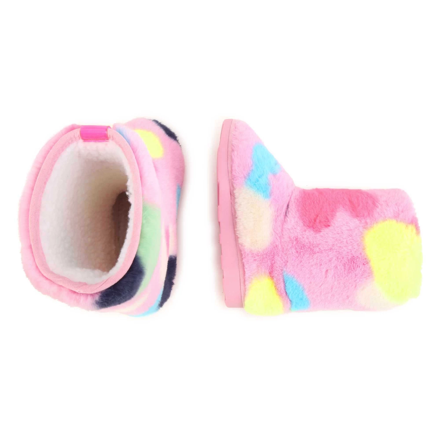 Ces bottines Billieblush présentent un imprimé à coeurs multicolores et un badge transparent siglé sur le devant. Elles sont munies d’une doublure en polaire duveteuse et d’une semelle intérieure en textile. Elles sont vendues en boîte à chaussures.