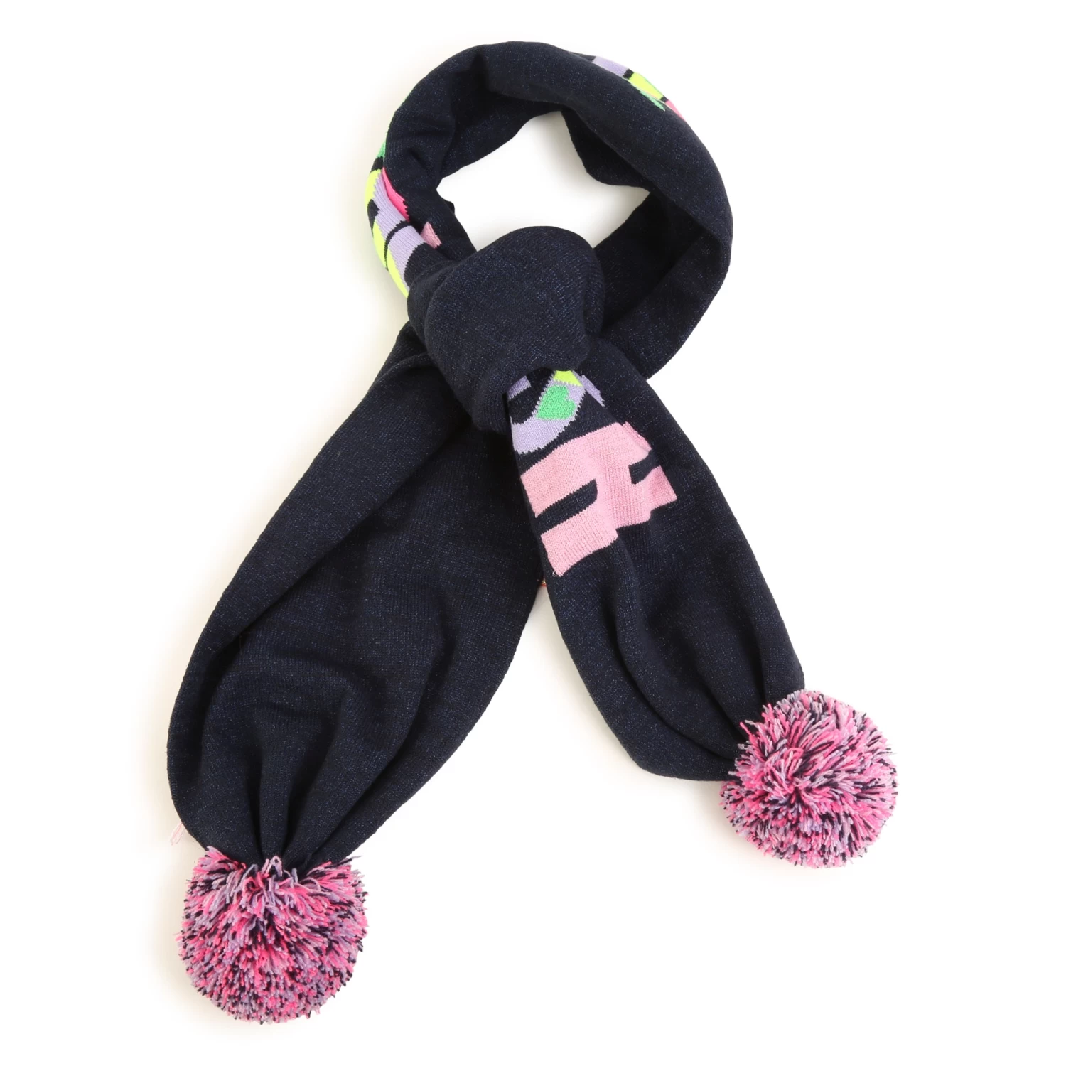 Cette écharpe Billieblush est tendance avec son logo Billieblush en lettres larges, réalisé dans des couleurs variées sur la longueur. Elle se termine par de gros pompons en fils multicolores. Ce modèle contient des parties en maille métallisée.