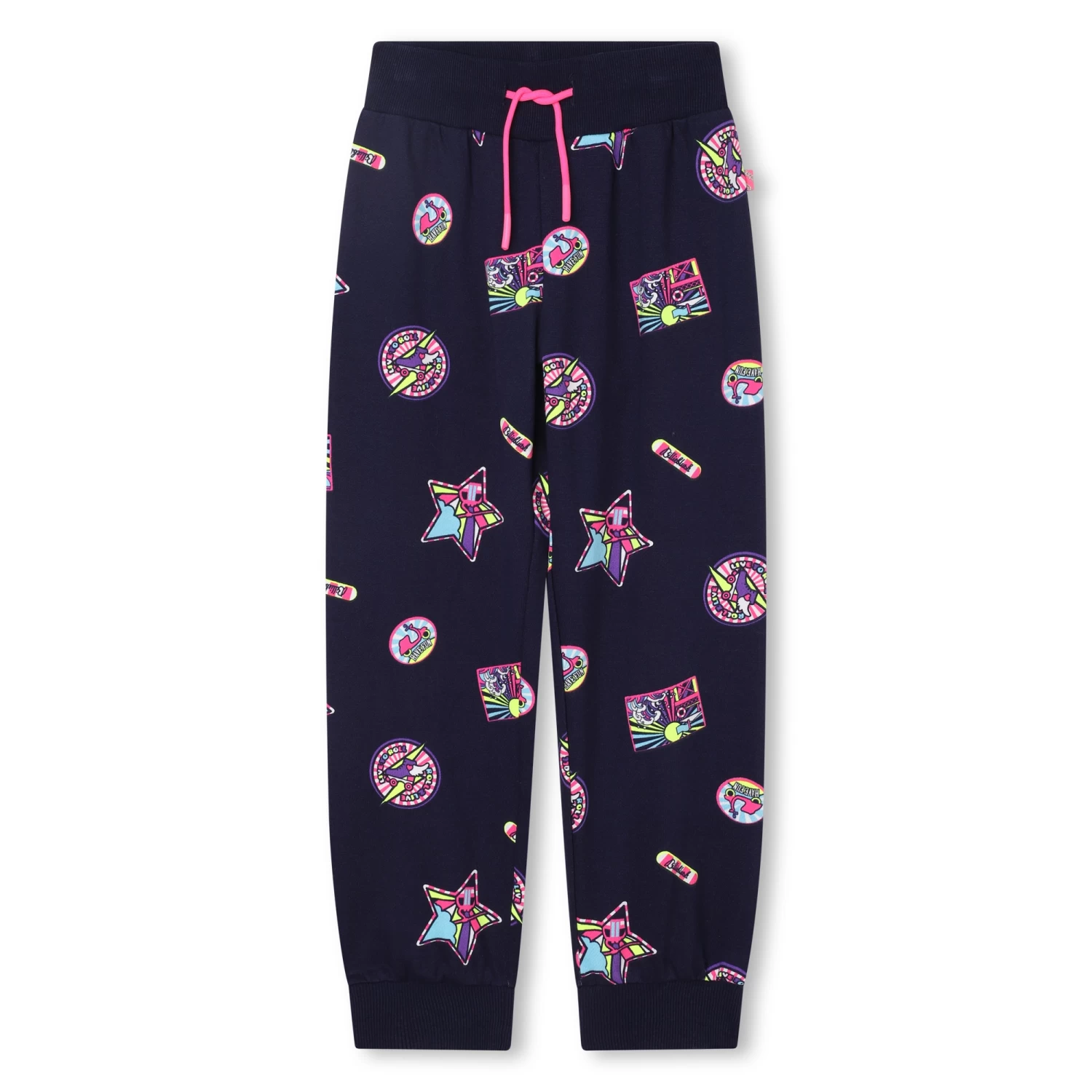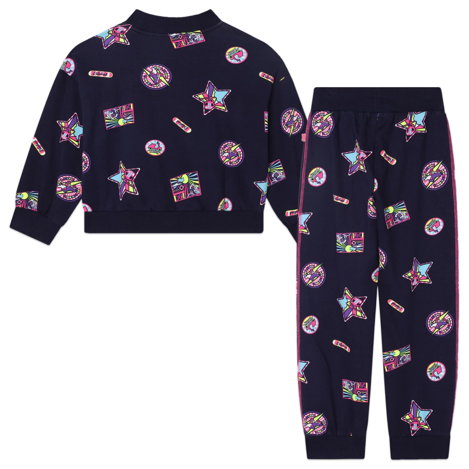 Cet ensemble de jogging Billieblush présente une confection en coton et élasthanne avec un imprimé « badges ». Il est composé d’un sweat-shirt avec un bord-côte à l’encolure, aux poignets et dans le bas, ainsi que d’un pantalon à taille élastiquée. Il est souligné de détails fluo.