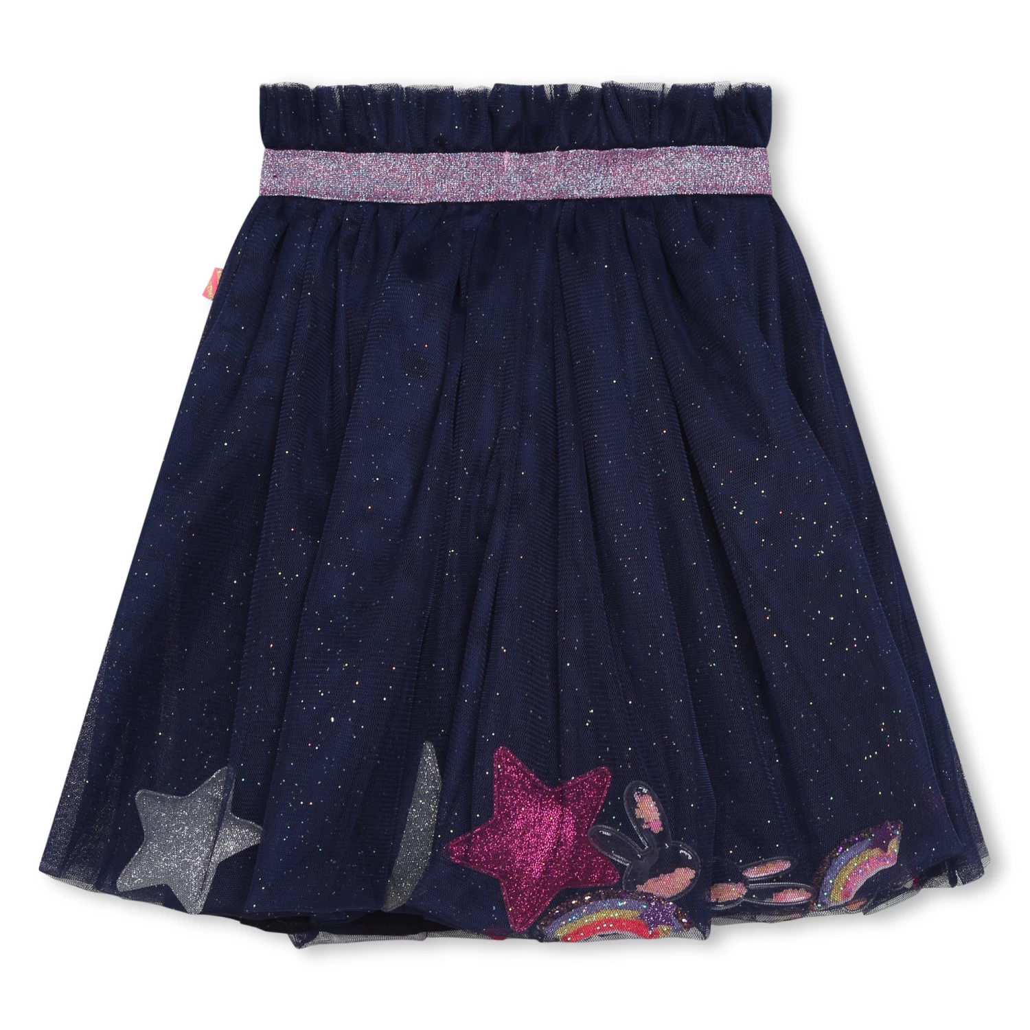 Cette jupe de cérémonie Billieblush est confectionnée en tulle doublé et pailleté. Ce « jupon fou » est garni d’éléments 3D à l’intérieur : étoiles, arc-en-ciel, lapins, etc. La partie basse est décorée de motifs multicolores garnis de sequins. Confortable, la taille haute est élastiquée et froncée. La ceinture pailletée s’agrémente d’un coeur brodé.