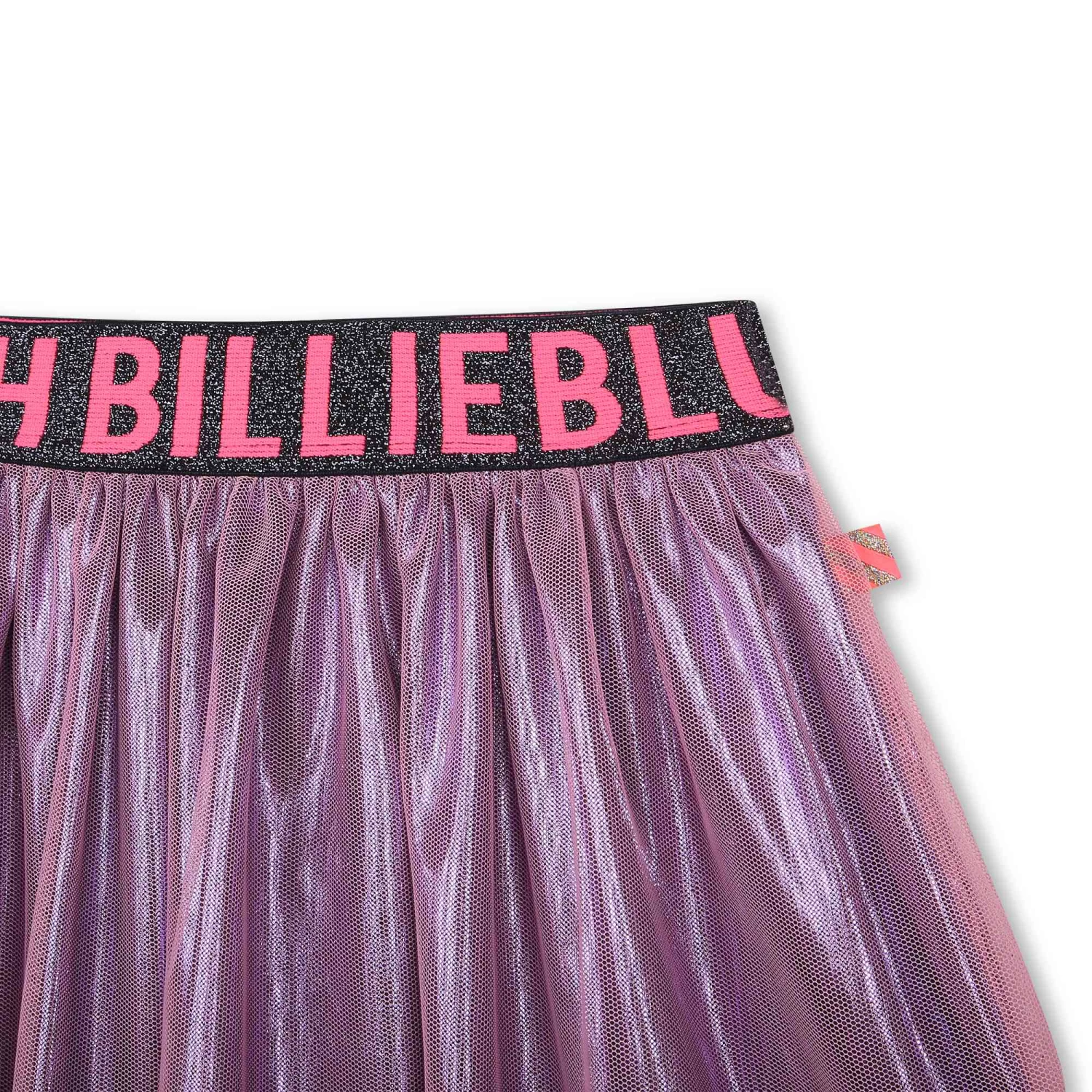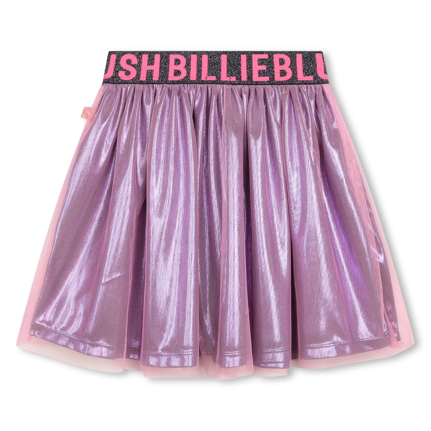 Cette jupe patineuse Billieblush est confectionnée en tulle uni, avec une doublure en teinte métallisée qui apporte de la brillance. Offrant un porté confortable, la taille élastiquée est pailletée et décorée du nom de la marque dans une couleur contrastante.