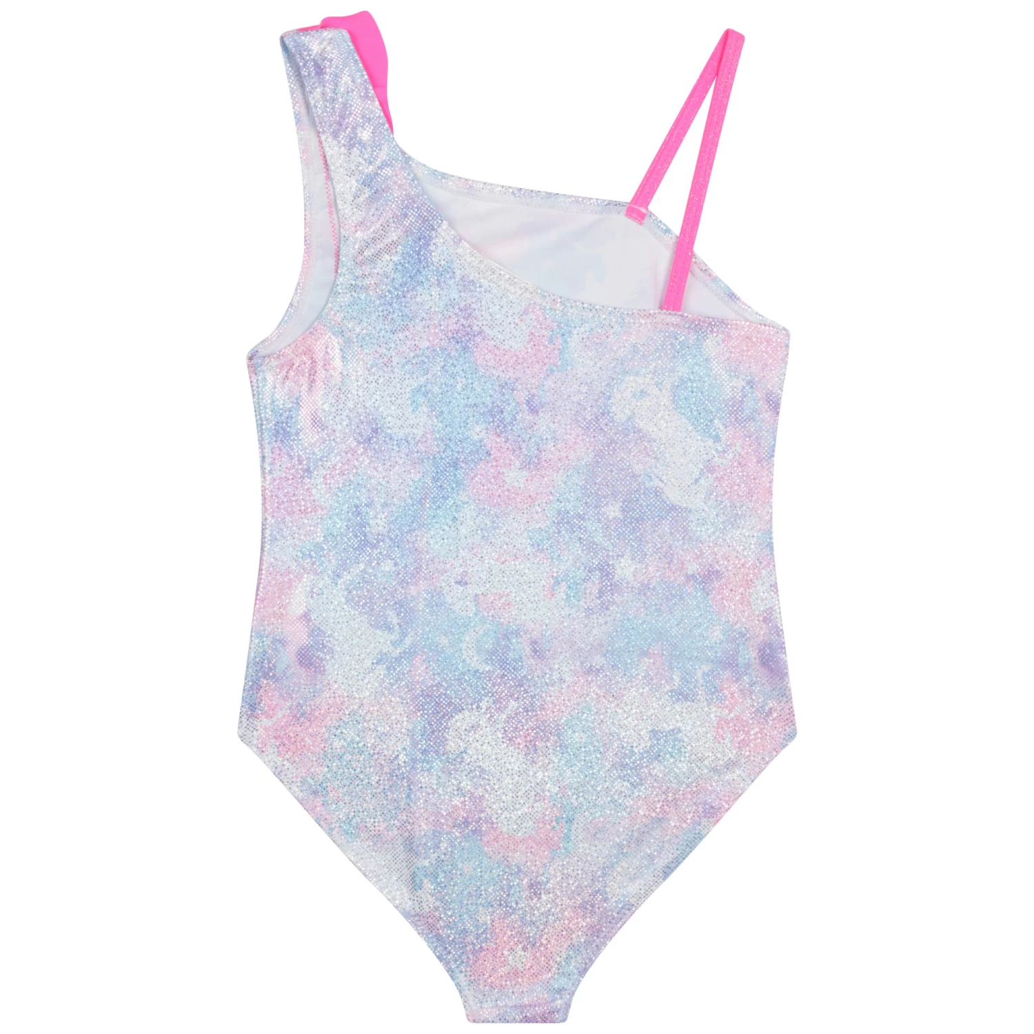 Ce maillot de bain 1 pièce Billieblush présente une confection en polyester, polyamide et élasthanne. Sublimé d’un imprimé licorne, il se caractérise par une fine bretelle et une bretelle avec des volants tout du long. Il est vendu avec sa pochette plastique.
