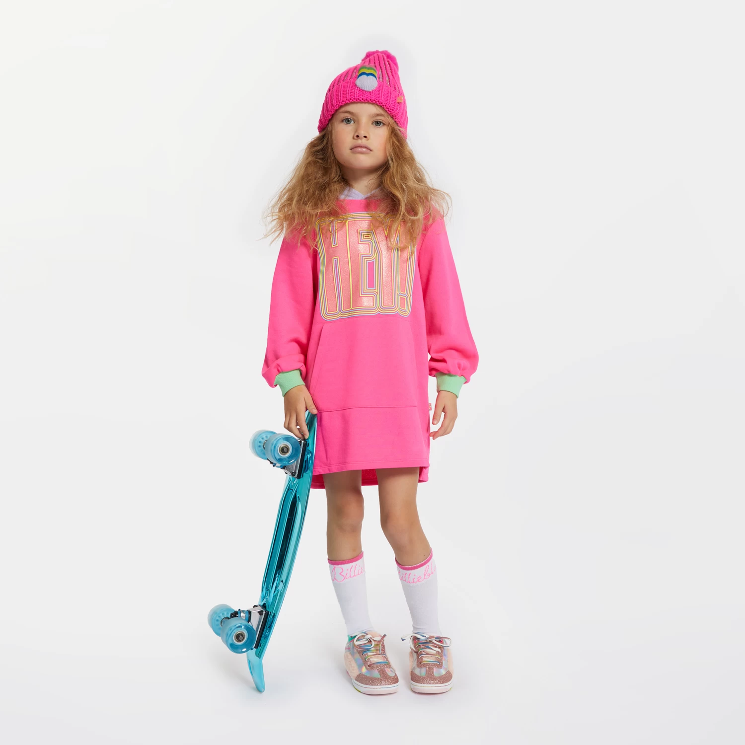 Cette robe droite Billieblush attire les regards avec ses poignets et sa capuche aux coloris contrastants. Elle se dote d’une poche kangourou sur le devant et est rehaussée d’une illustration pailletée. Une étiquette tissée rayée est cousue sur le côté.