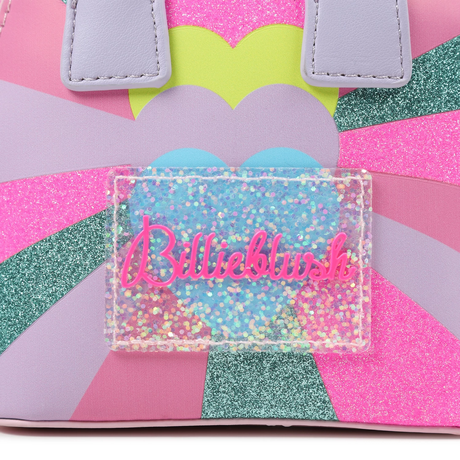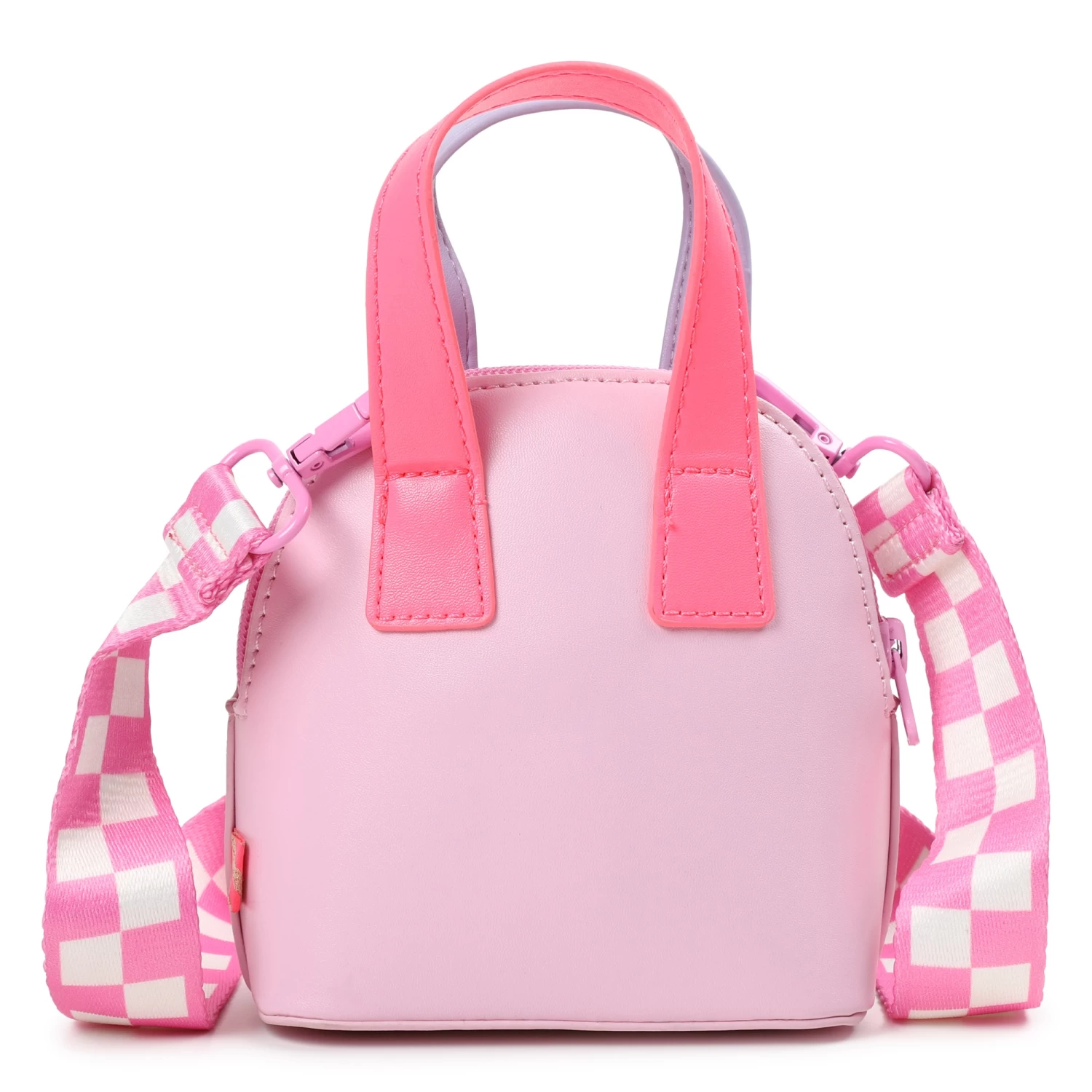 Ce sac à main Billieblush se démarque avec son imprimé coeurs à paillettes multicolores sur le devant. Il se porte à l’aide d’une large bandoulière en jacquard imprimé damier. Dimensions : 13,5 x 13 x 6,5 cm.