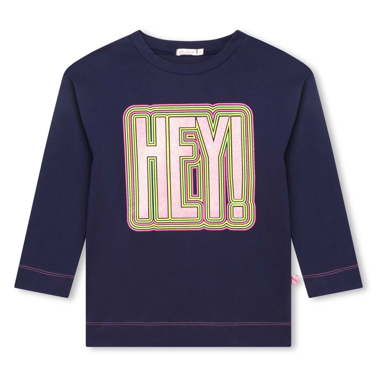 Ce T-shirt pour fille à manches 3/4 présente une forme ample et longue pour plus de confort. Une illustration fantaisie s’affiche sur le devant. Ce modèle Billieblush à col rond est confectionné en 100 % coton.