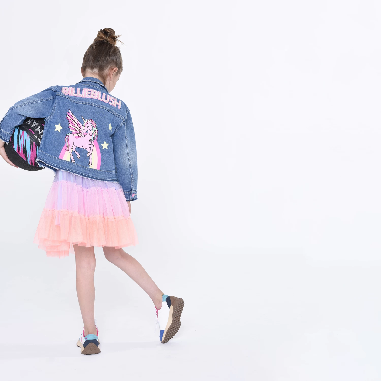 Indispensable dans le vestiaire fille, cette veste en denim Billieblush séduit avec son illustration licorne dans le dos. En coton et en élasthanne, elle se caractérise par des poches plaquées et une fermeture boutonnée sur le devant.