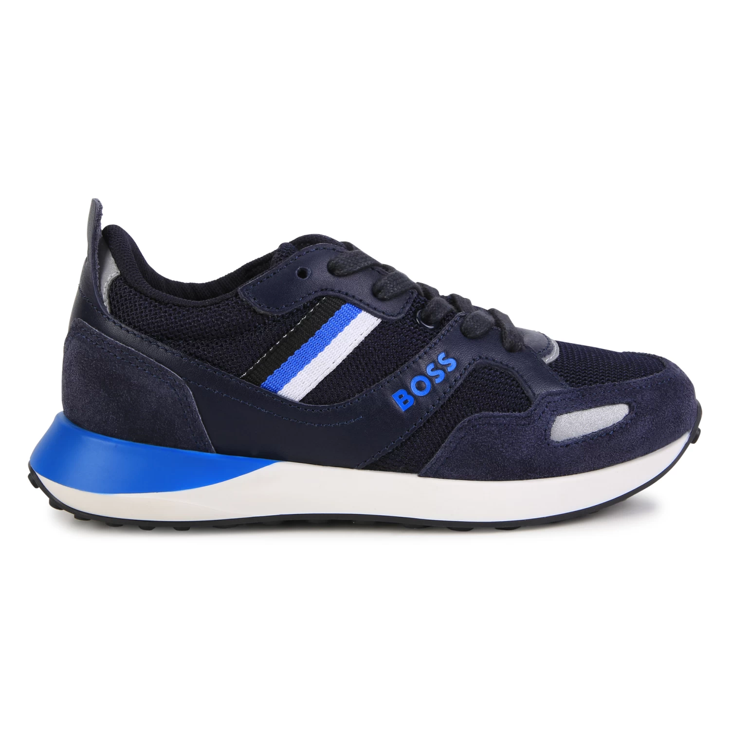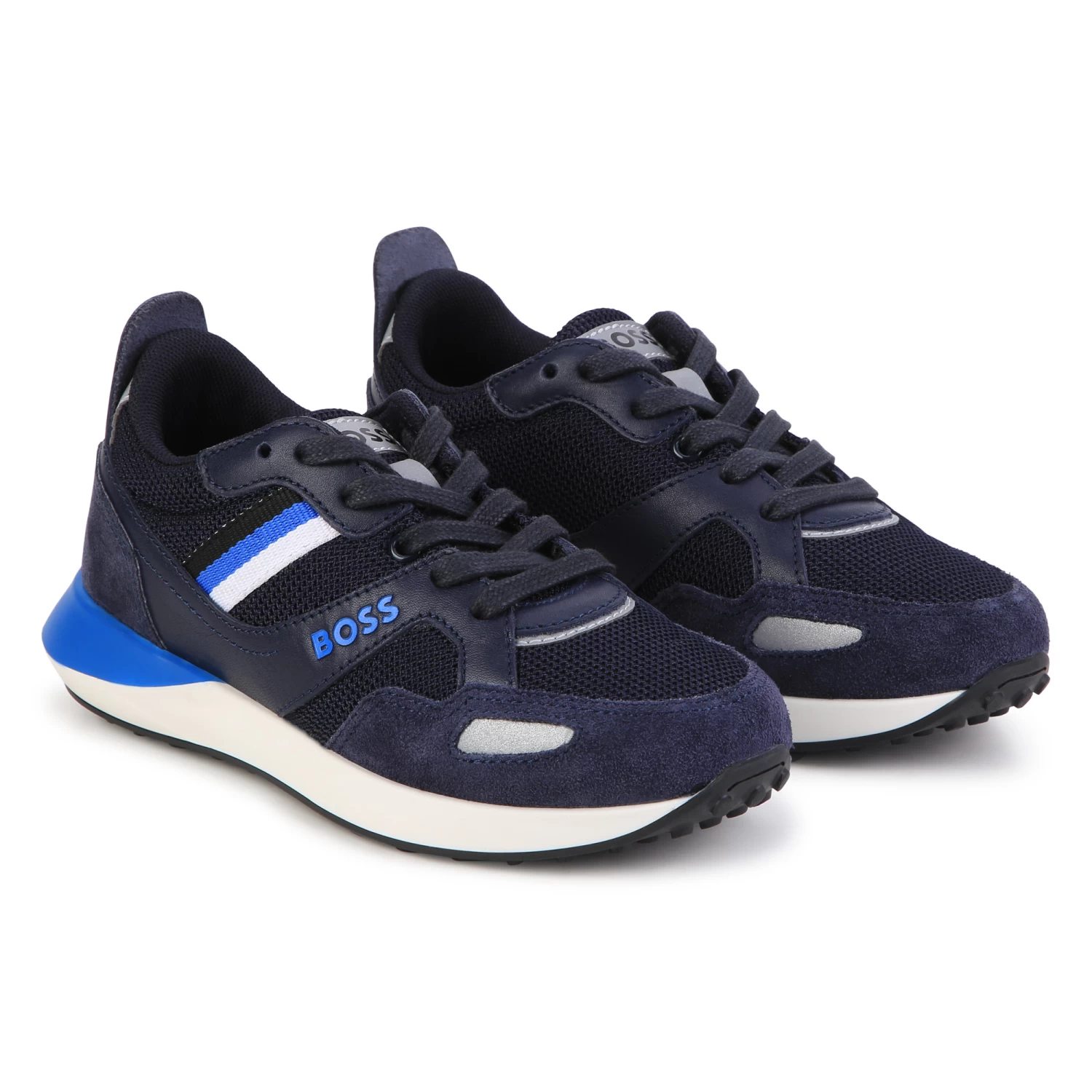Avec leur design inspiré de la collection adulte, ces baskets BOSS remportent tous les suffrages auprès des enfants. Elles mêlent résille et croûte de cuir velours de vachette au tannage minéral. Vendues dans une boite à chaussures. Contient des parties non textiles d’origine animale.
