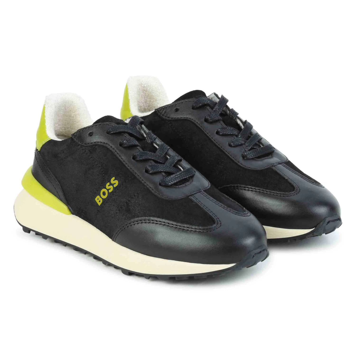 Ces baskets BOSS mixent habilement cuir de vachette et croûte de cuir velours tannage minéral. La doublure est en matière éponge pour un confort optimal. Cette paire s’inspire de la collection adulte. Vendues dans une boite à chaussures. Contient des parties non textiles d’origine animale.