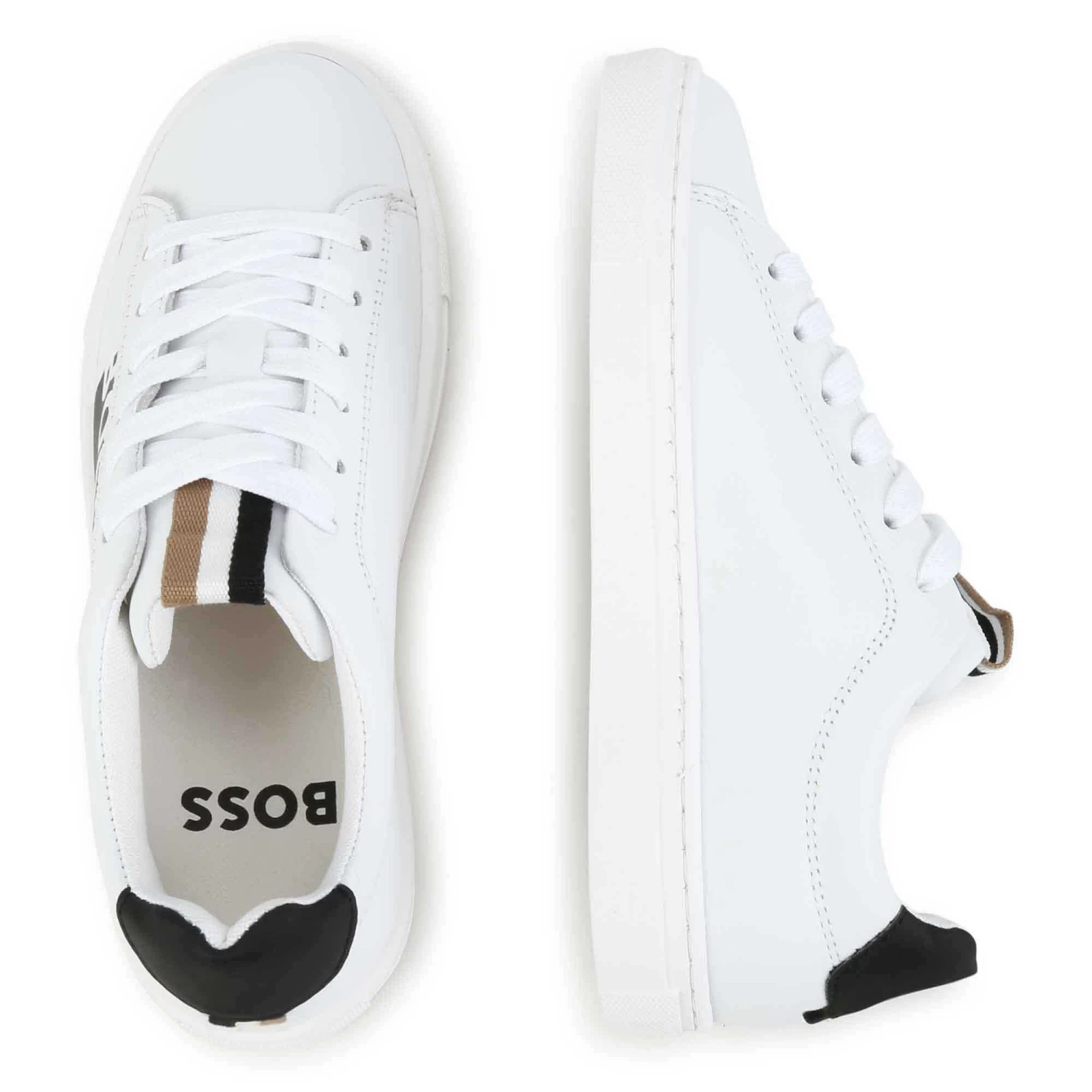 Ces baskets à logo BOSS sont confectionnées en cuir de vachette au tannage minéral. Inspirées de la collection adulte, elles comportent une semelle intérieure en microfibre respirante et antibactérienne. Vendues dans une boite à chaussures. Contient des parties non textiles d’origine animale.