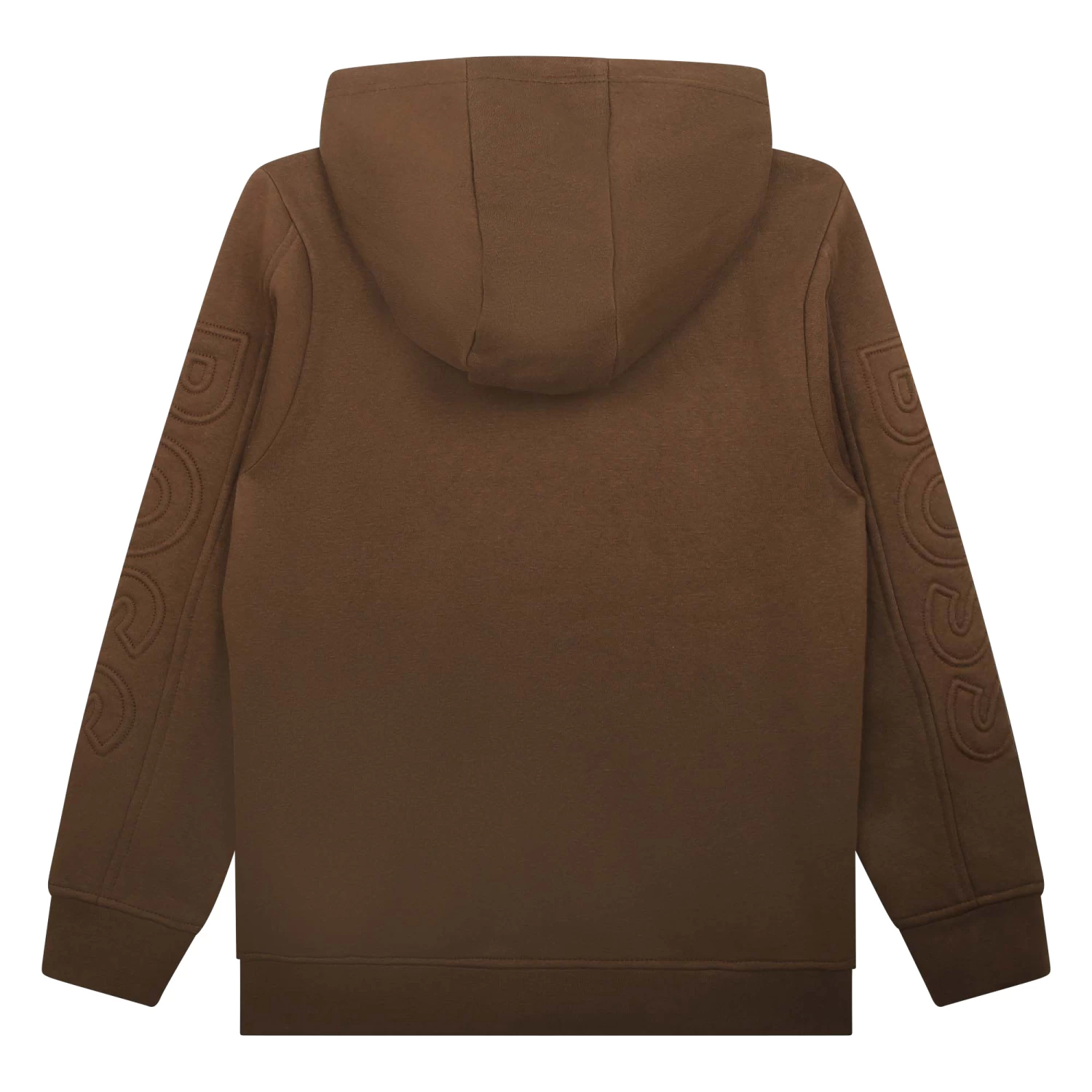 En coton, polyester et élasthanne, ce cardigan molletonné BOSS pour enfant présente des poches sur les côtés et une capuche doublée de résille. Le logo est embossé sur les manches. Ce modèle est décliné en deux coloris.