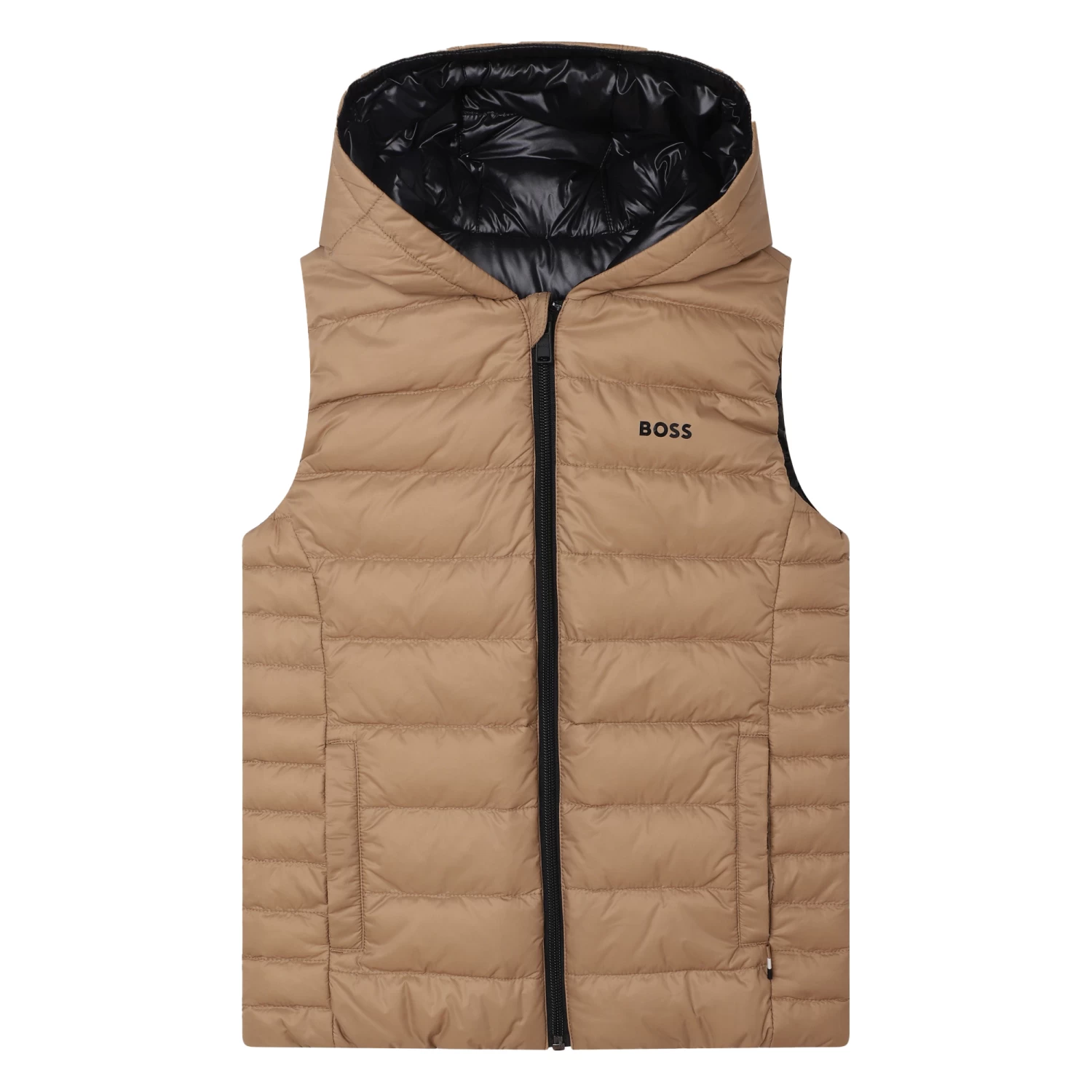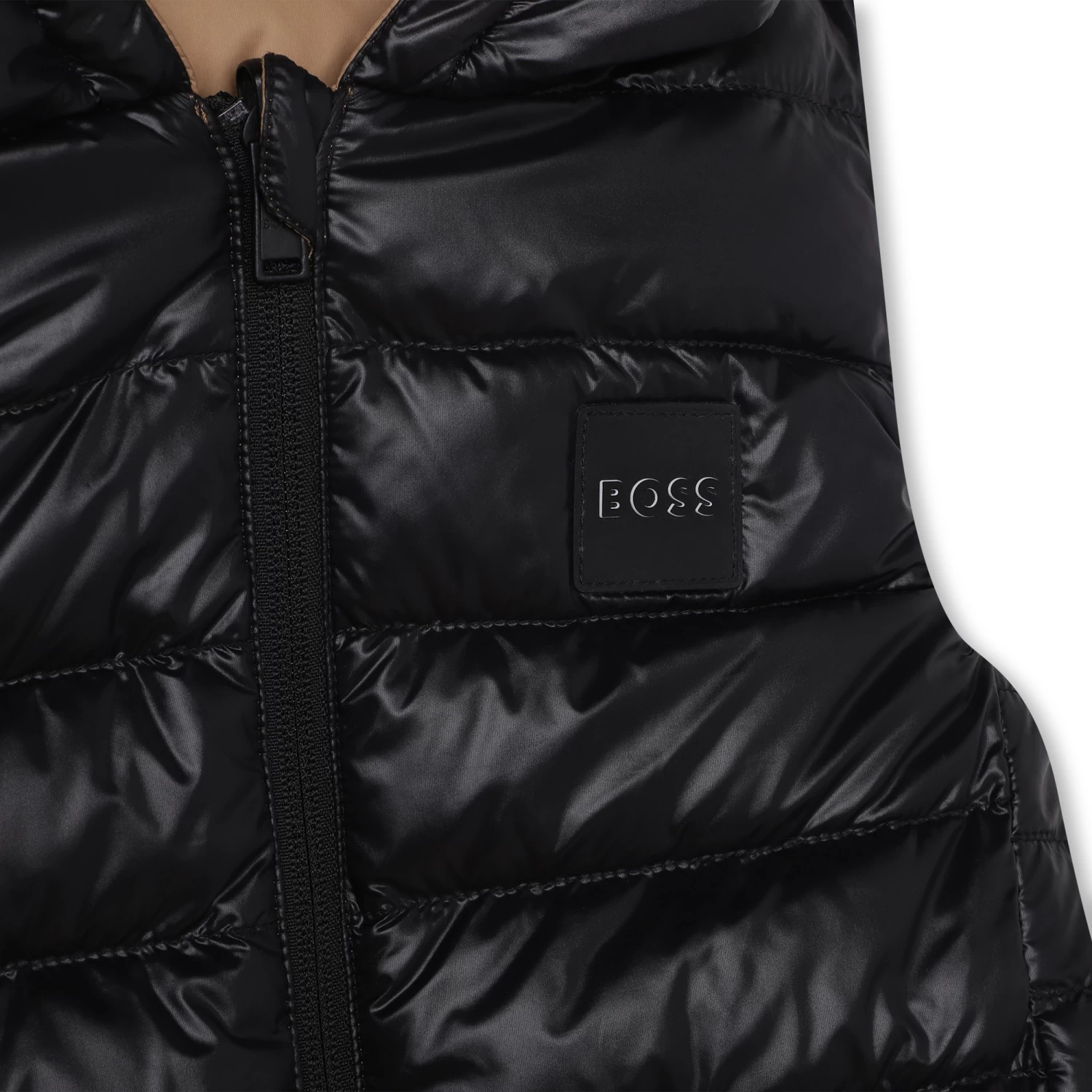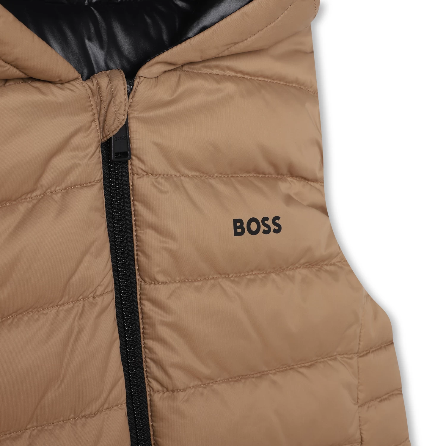 Cette doudoune sans manche BOSS prĂ©sente une confection en polyamide et un rembourrage en duvet et plumes de canard. Elle est munie d’une fermeture zippĂ©e et de poches latĂ©rales. Le logo BOSS est imprimĂ© sur la poitrine. Contient des parties non textiles d’origine animale.