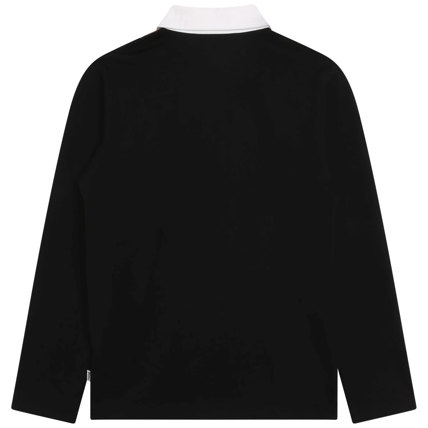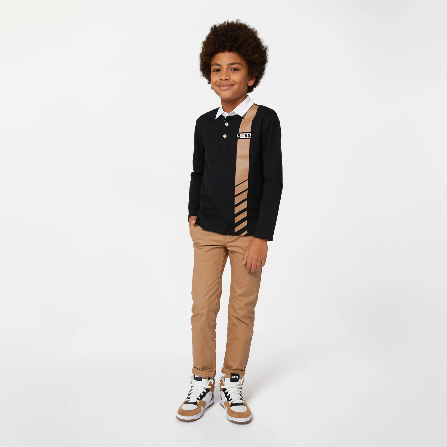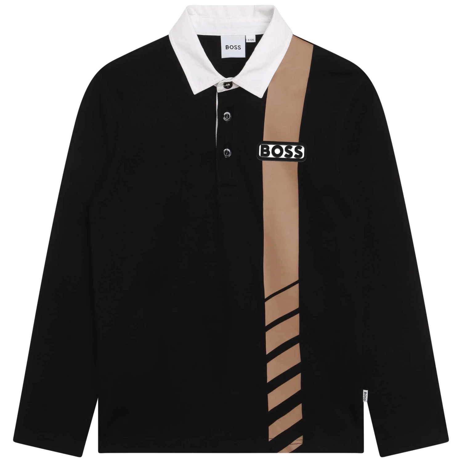 L’élégance est au rendez-vous avec ce polo à manches longues BOSS. 100% coton, ce modèle présente une fermeture boutonnée et un col contrasté en popeline. Il arbore une bande colorée avec le logo BOSS imprimé et une étiquette tissée siglée sur le côté.