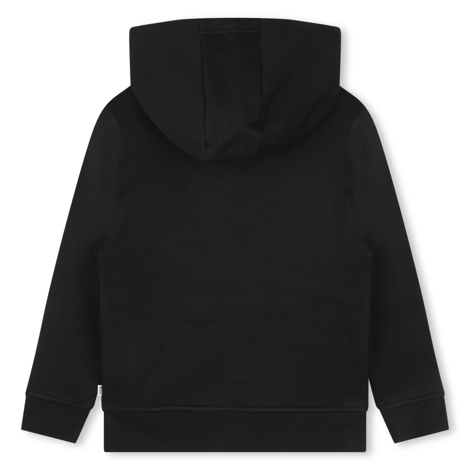 Ce sweat-shirt à capuche BOSS est issu de la collection adulte. Confectionné en coton mélangé, il arbore le logo « BOSS » imprimé sur la poitrine et présente des empiècements contrastés sur le haut. Il est muni d’une poche kangourou.