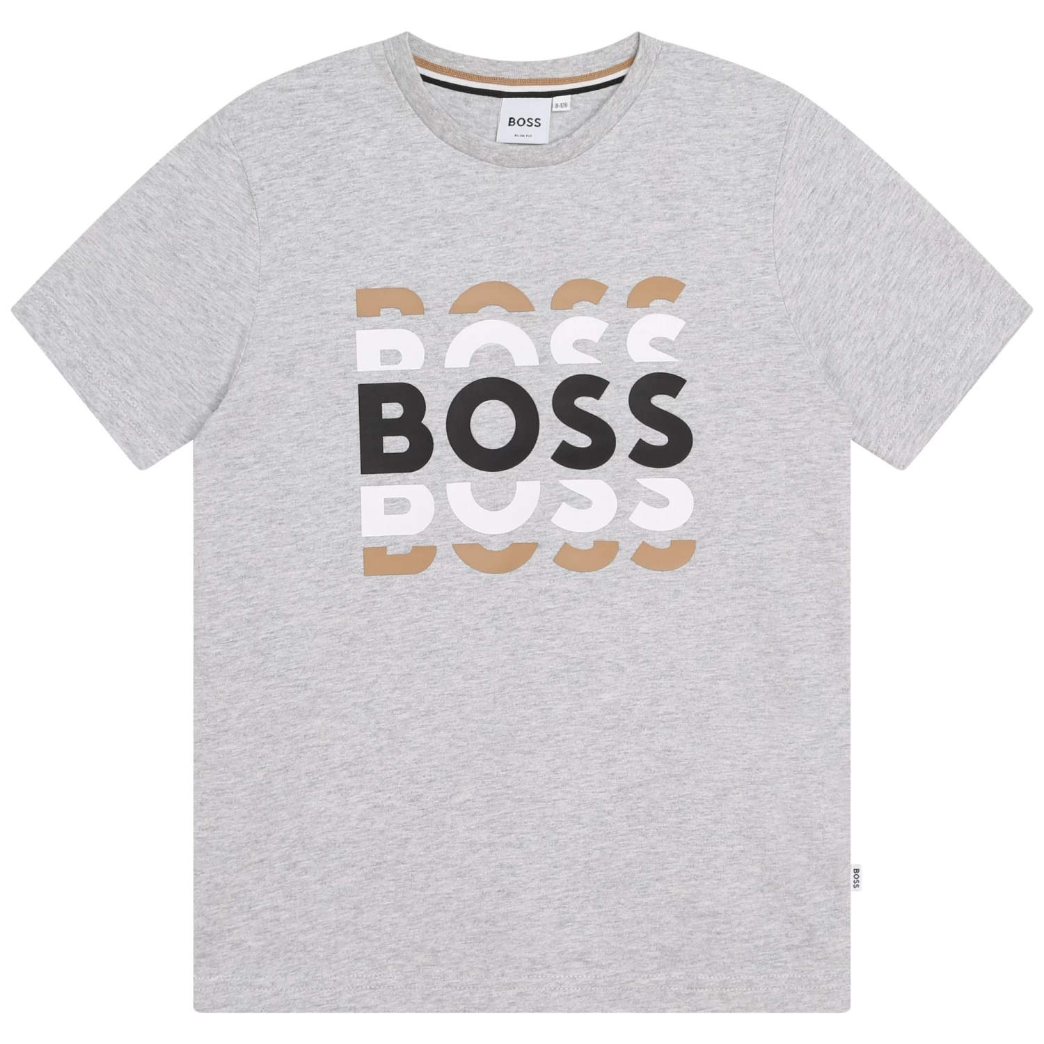 Ce T-shirt pour garçon à manches courtes est facile à porter au quotidien. Il présente un col rond et une coupe ajustée très tendance. Il est confectionné en 100% coton et il arbore un logo BOSS fantaisie sur le devant.