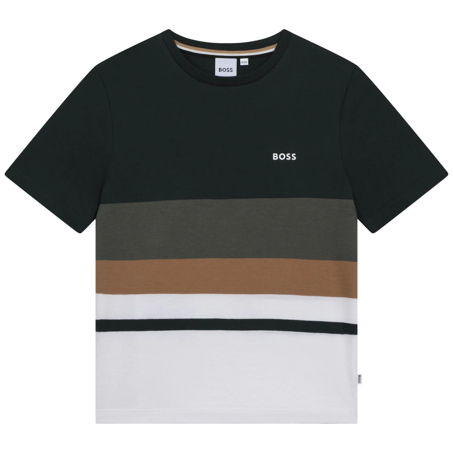 Ce T-shirt BOSS affiche une allure sportive avec ses rayures de tailles et couleurs différentes. Le logo BOSS est imprimé dans une teinte contrastante sur la poitrine. Ce modèle se présente dans une coupe droite confortable et intemporelle.