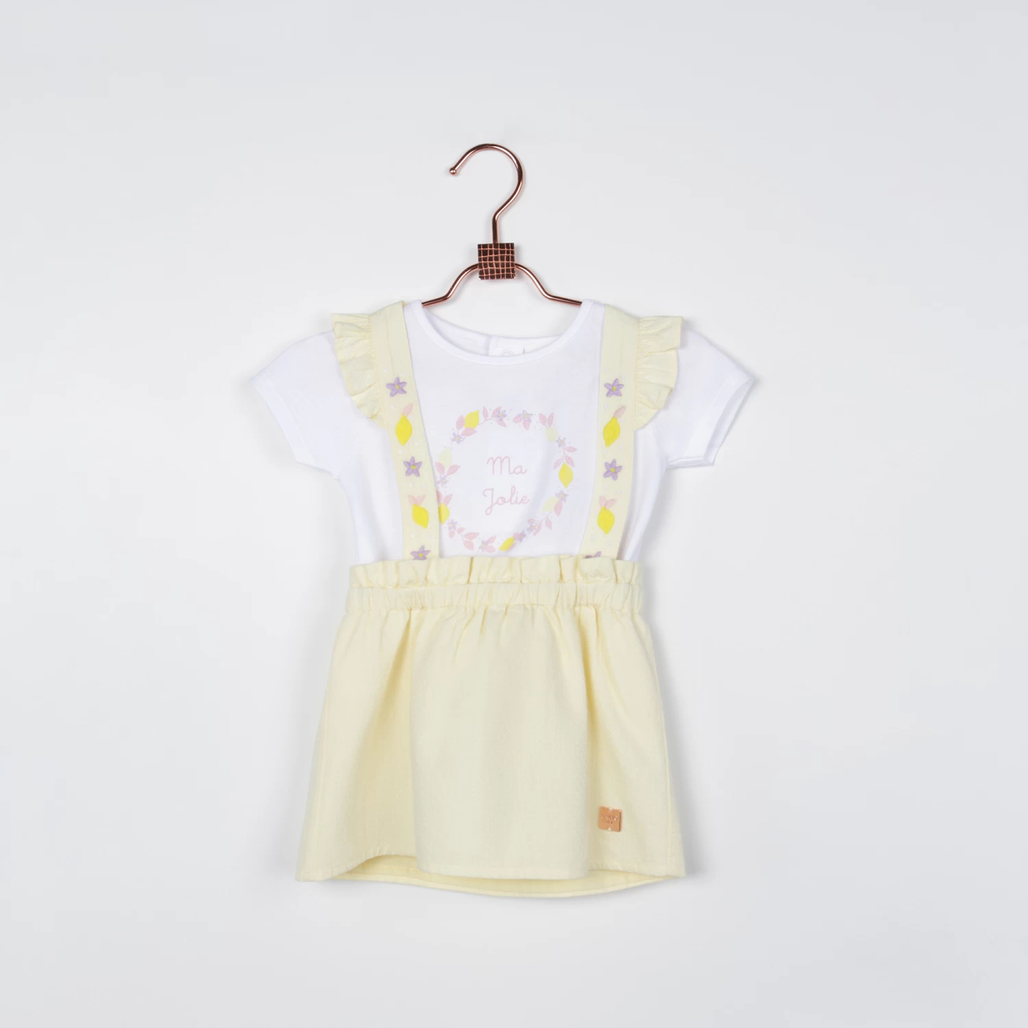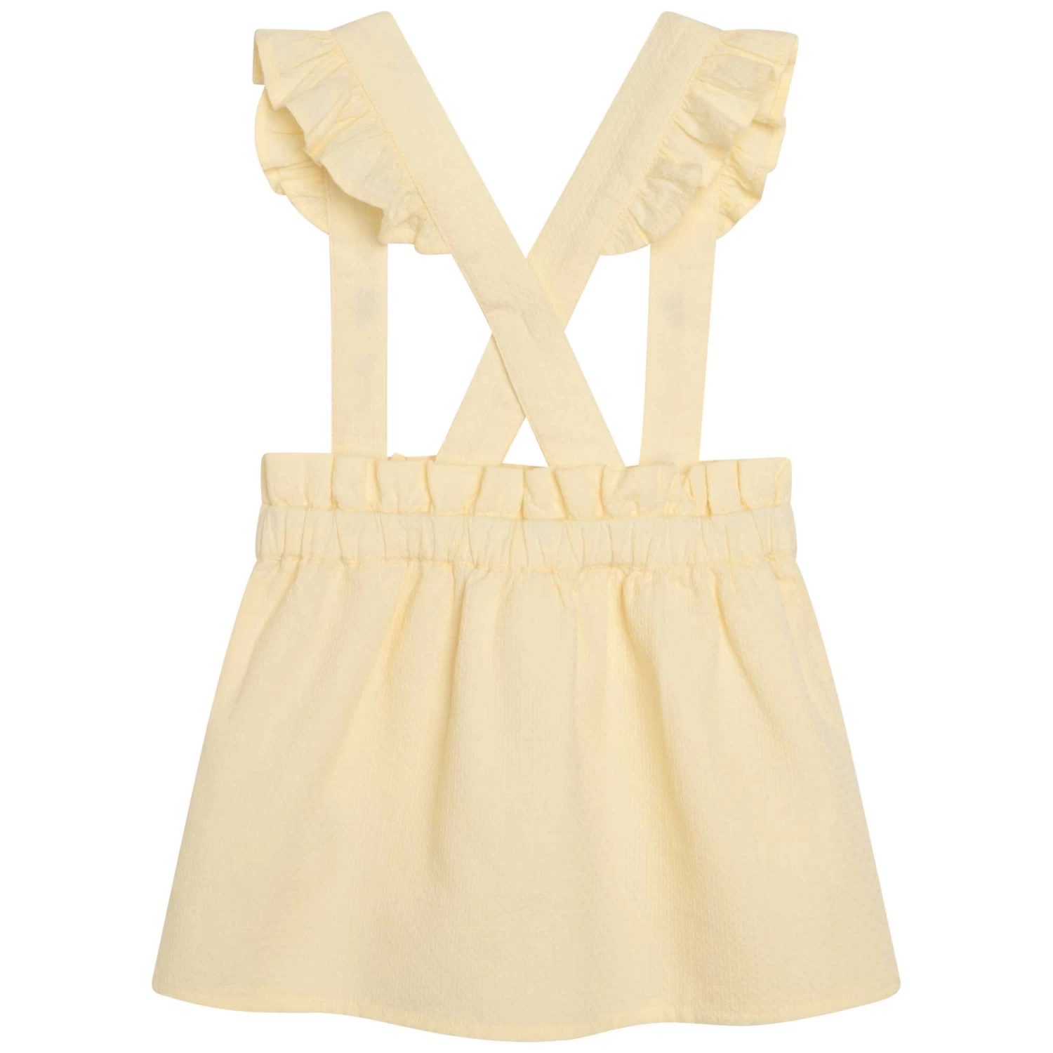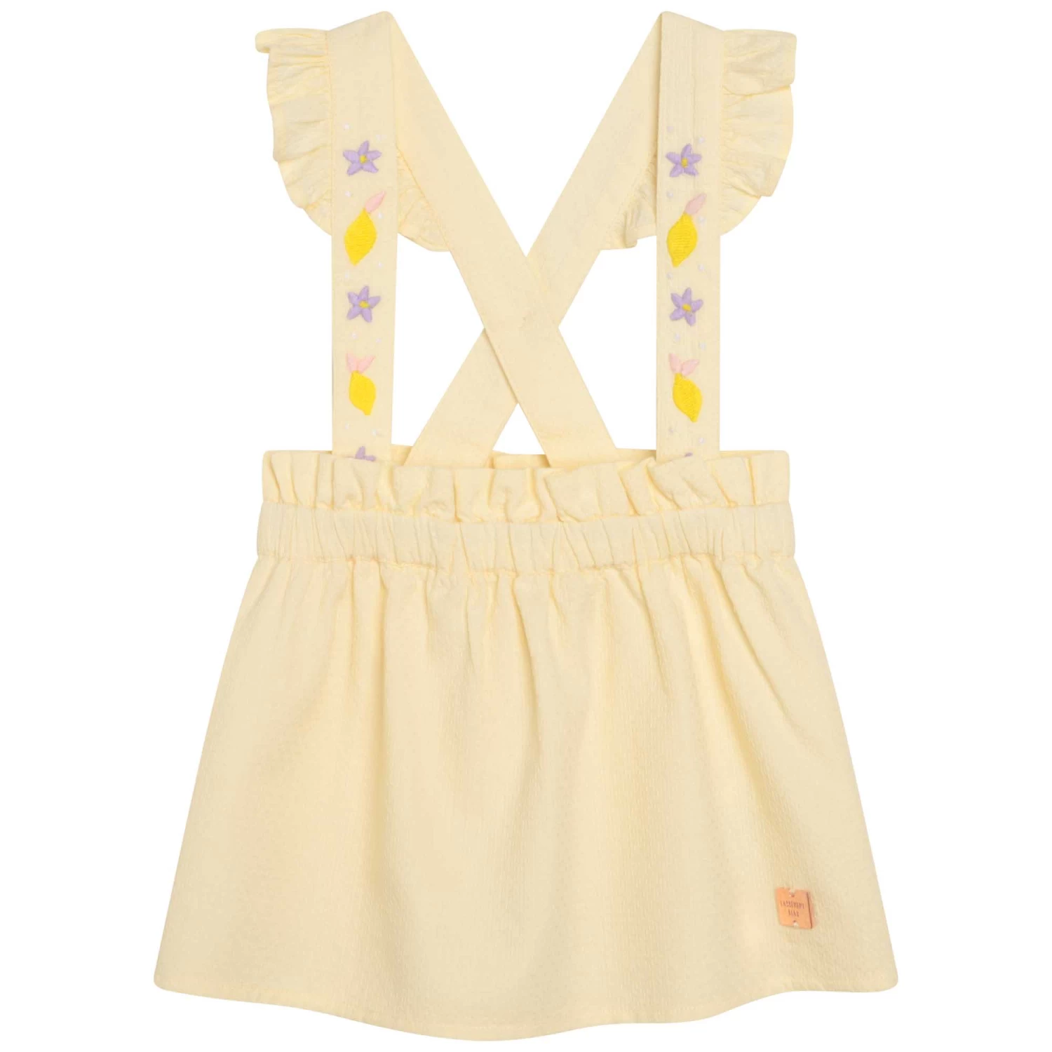 Pour un look rétro, cette jupe Carrément Beau est le modèle idoine. 100% coton, elle se caractérise par une doublure en voile de coton, des bretelles amovibles avec des volants et des broderies ainsi qu’une taille élastiquée. Elle est soulignée d’une plaque siglée.
