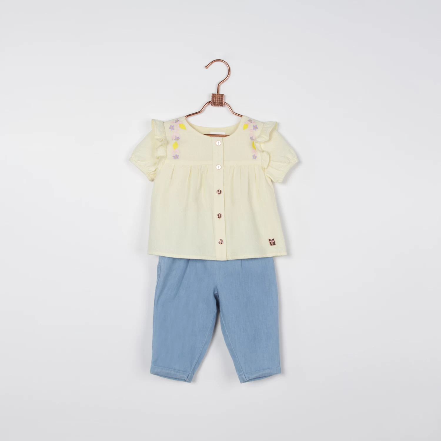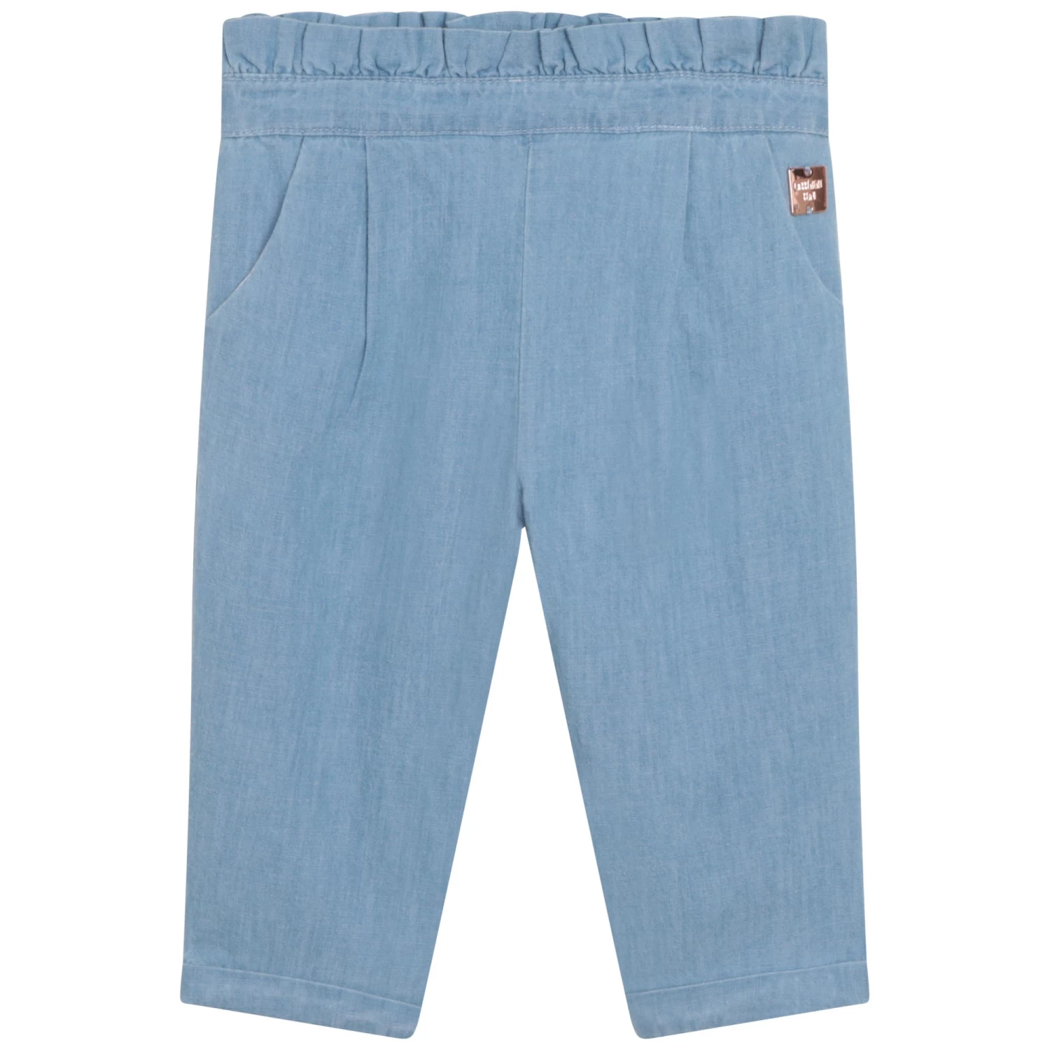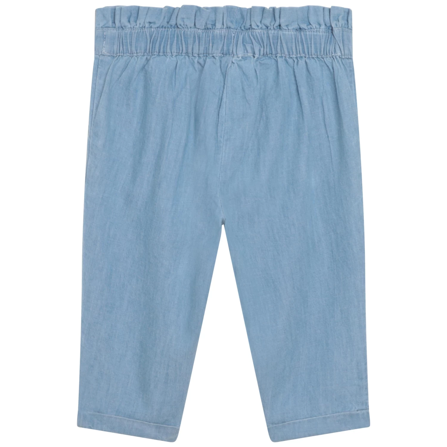 Ce pantalon en denim Carrément Beau assure une allure estivale.100% coton, il présente une coupe chino, une taille ajustable, une fermeture par pressions et des poches italiennes. Côté finitions, il est muni de revers et est souligné d’une plaque siglée sur le côté.
