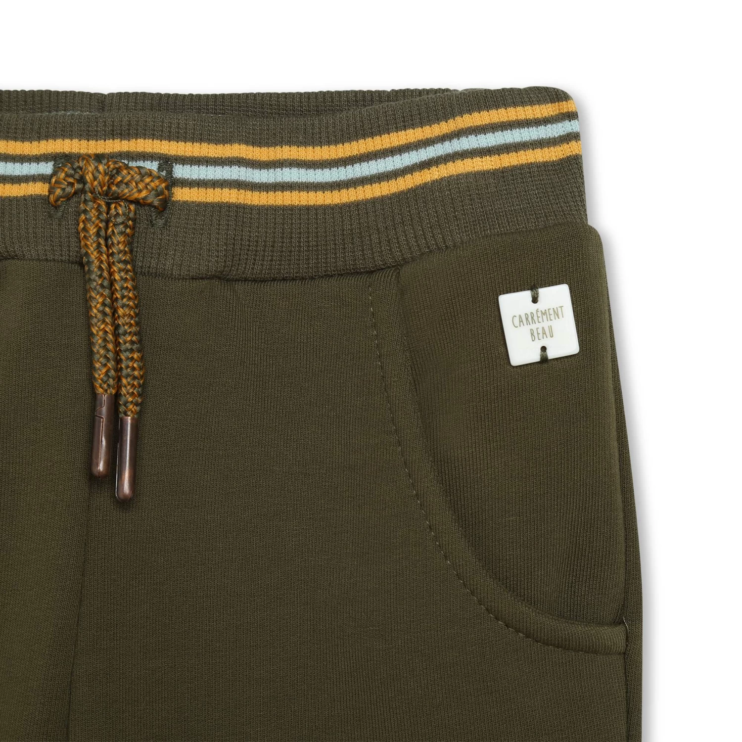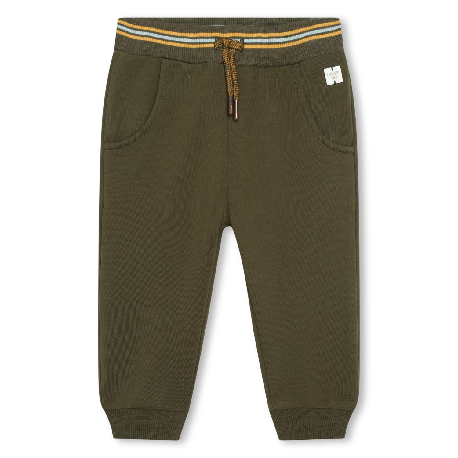 Ce pantalon molletonné Carrément Beau est confectionné avec du coton issu de l’agriculture biologique et de l’élasthanne. Il présente une taille élastiquée soulignée d’un bord-côte rayé avec un cordon. Il est muni de poches italiennes et est souligné d’une petite plaque siglée.