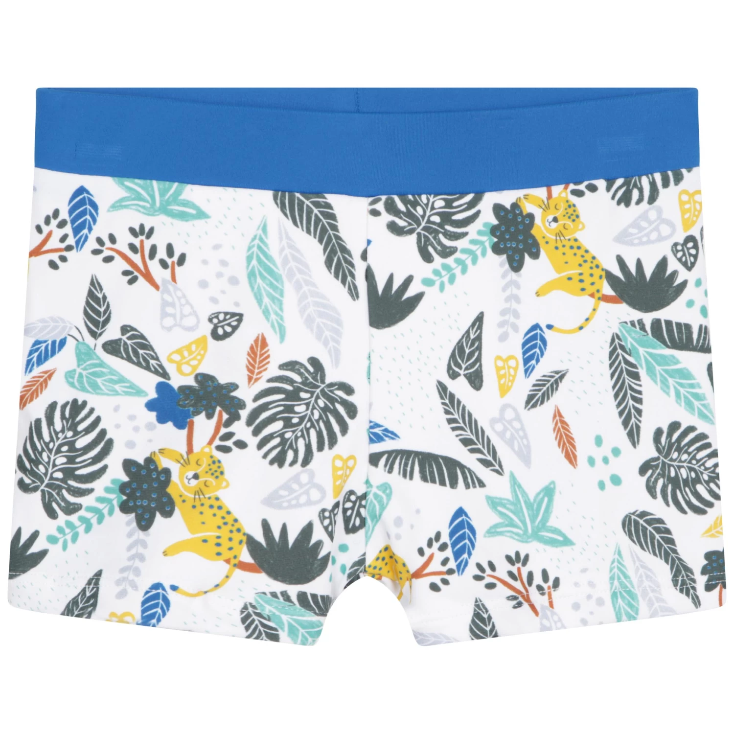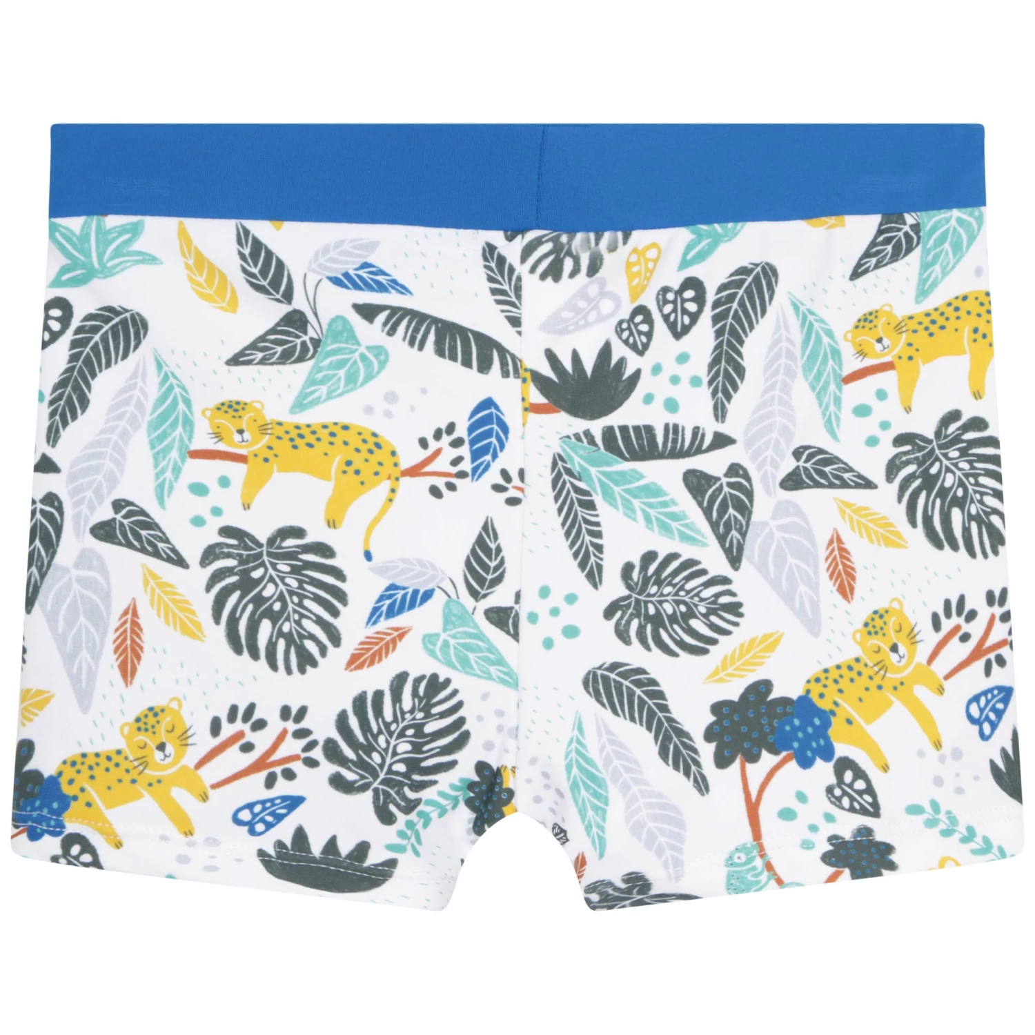 Pour une tenue estivale tendance, ce short de bain Carrément Beau est le modèle idéal. En polyamide et en élasthanne, il se caractérise par un motif jungle et une taille élastiquée. Il est vendu dans une pochette dédiée.