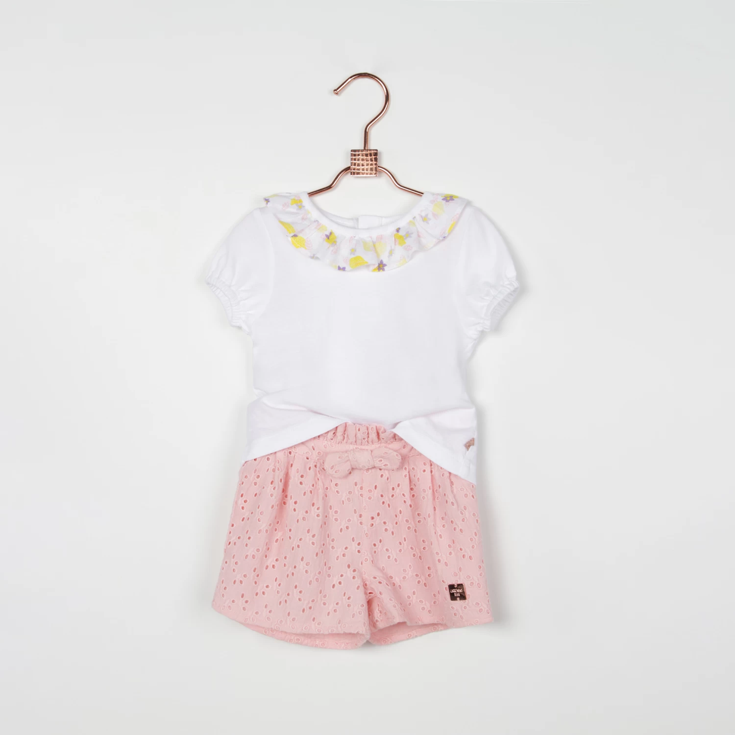 Ce short Carrément Beau est ravissant avec ses broderies anglaises. Il comporte une taille élastiquée volantée rehaussée d’un noeud fantaisie. Confectionné en coton, ce modèle se dote d’une doublure en voile de coton pour plus de confort.