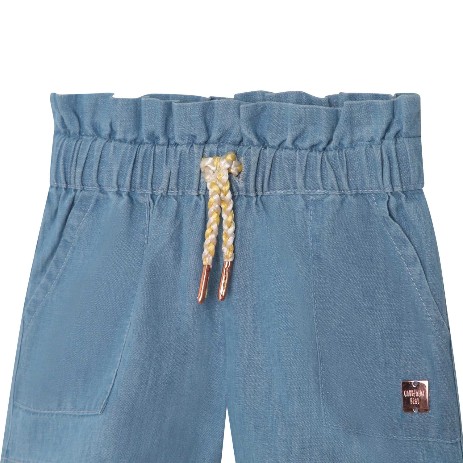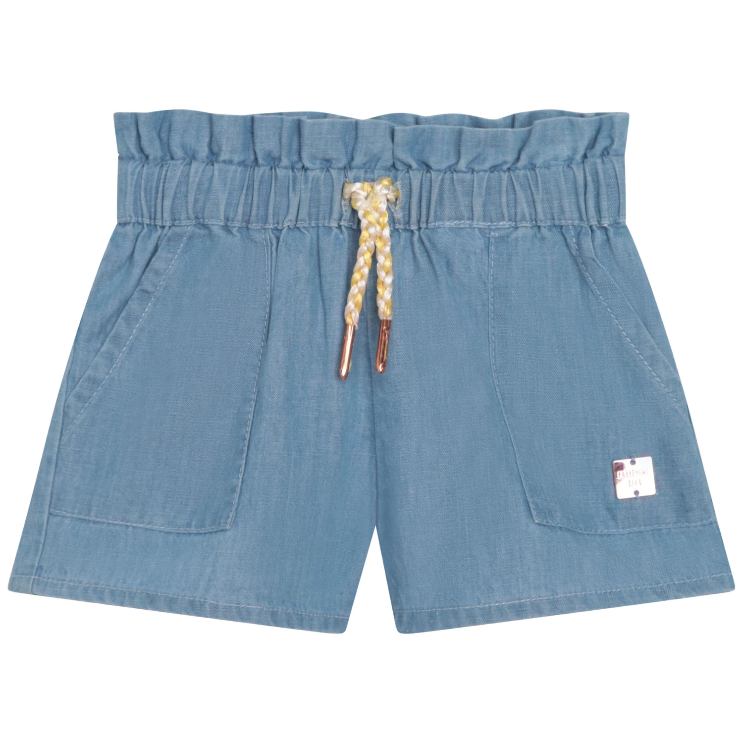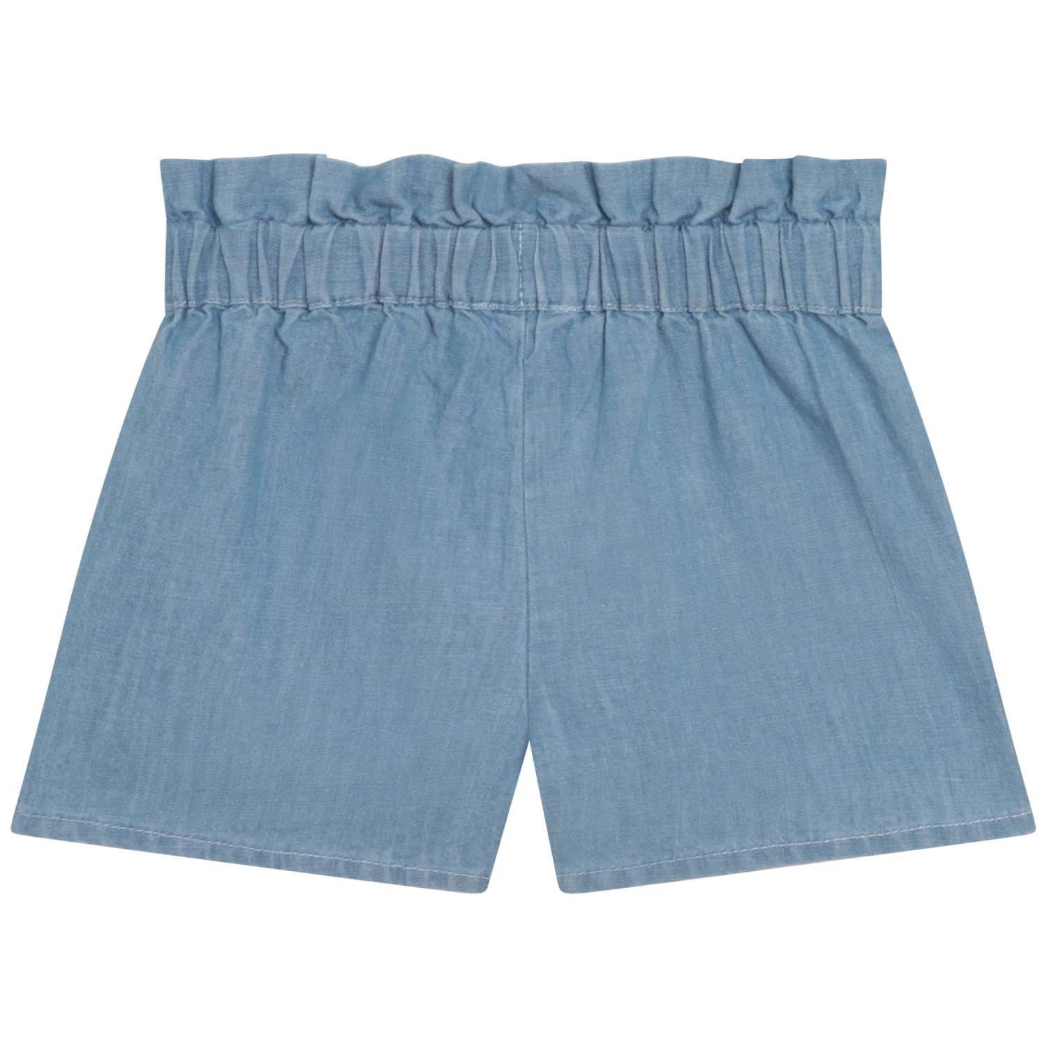 Ce short Carrément Beau est très agréable à porter grâce à sa confection en denim de coton léger et sa taille haute élastiquée. Cette dernière se termine par un volant raffiné. Ce modèle comporte de larges poches sur le devant.