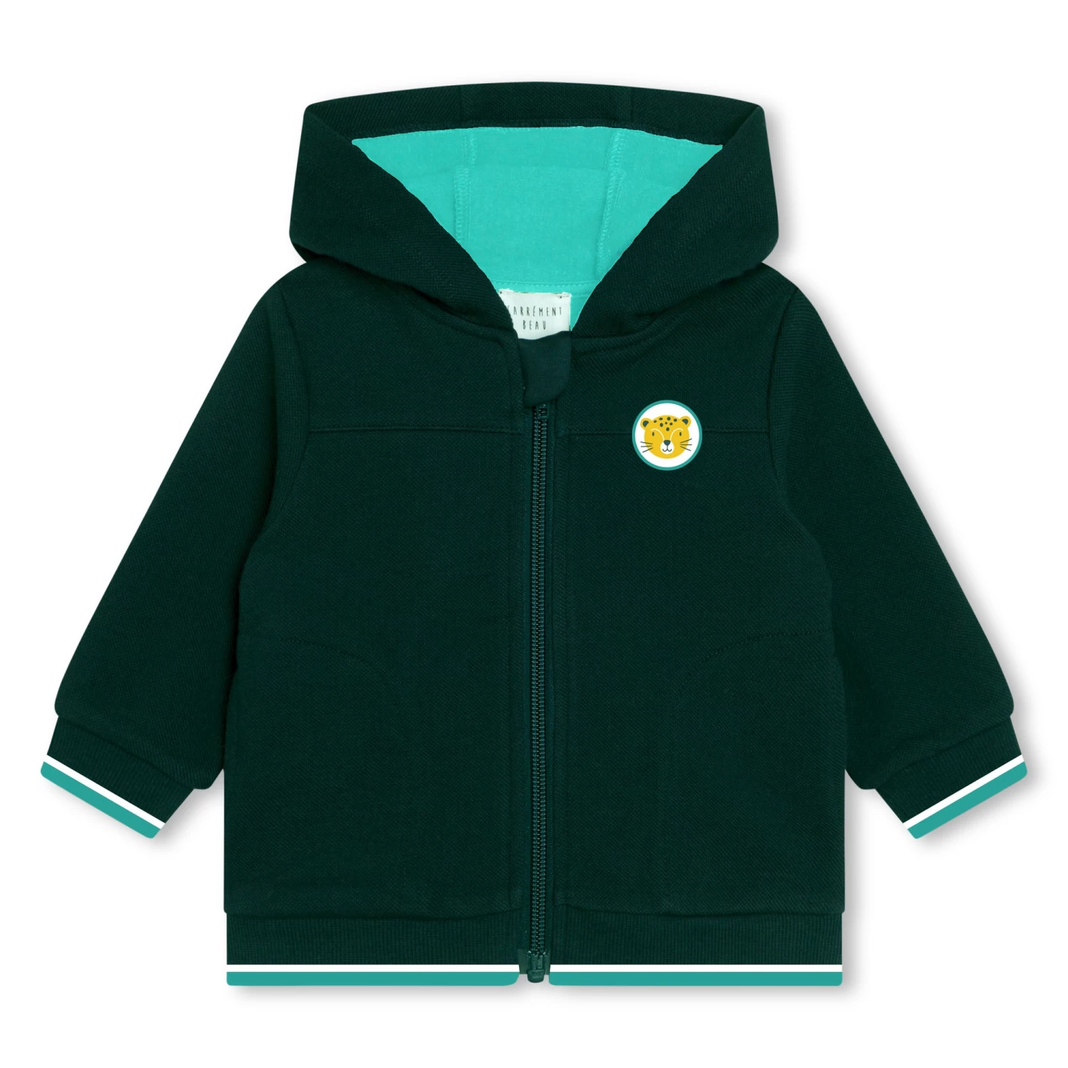 Ce sweat-shirt à capuche Carrément Beau remporte tous les suffrages auprès des enfants avec son badge tigre sur la poitrine. Il comporte un bord-côte rayé et élastiqué aux poignets et à la base. Il est confectionné en coton issu de l’agriculture biologique.