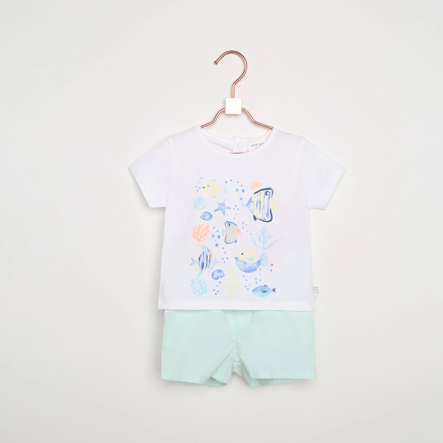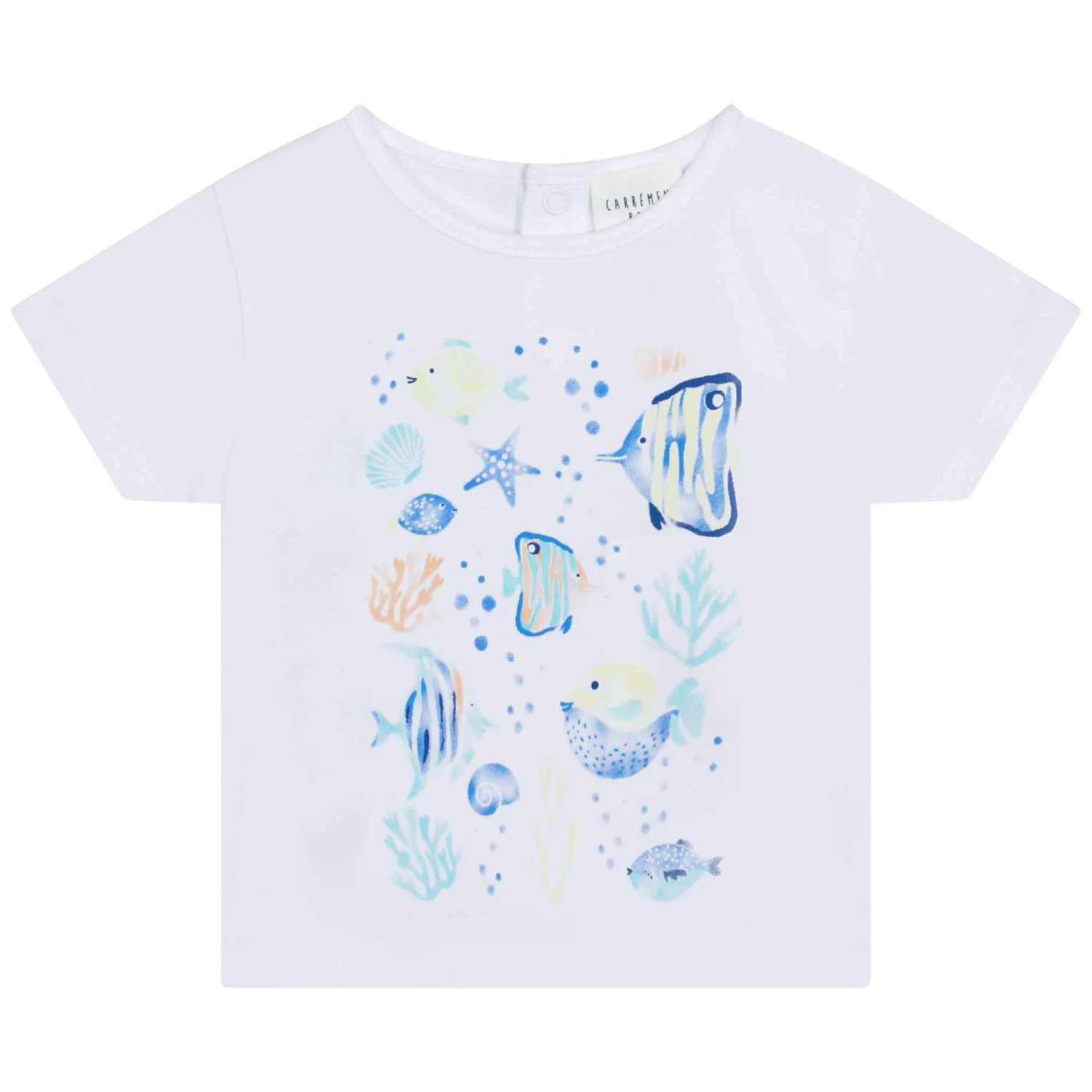 Les fonds marins sont à l’honneur sur ce T-shirt Carrément Beau, véritable invitation à la détente. Il se dote de manches courtes et d’une encolure ronde. Des pressions sont présentes au dos pour faciliter l’enfilage. Il est confectionné en coton issu de l’agriculture biologique.