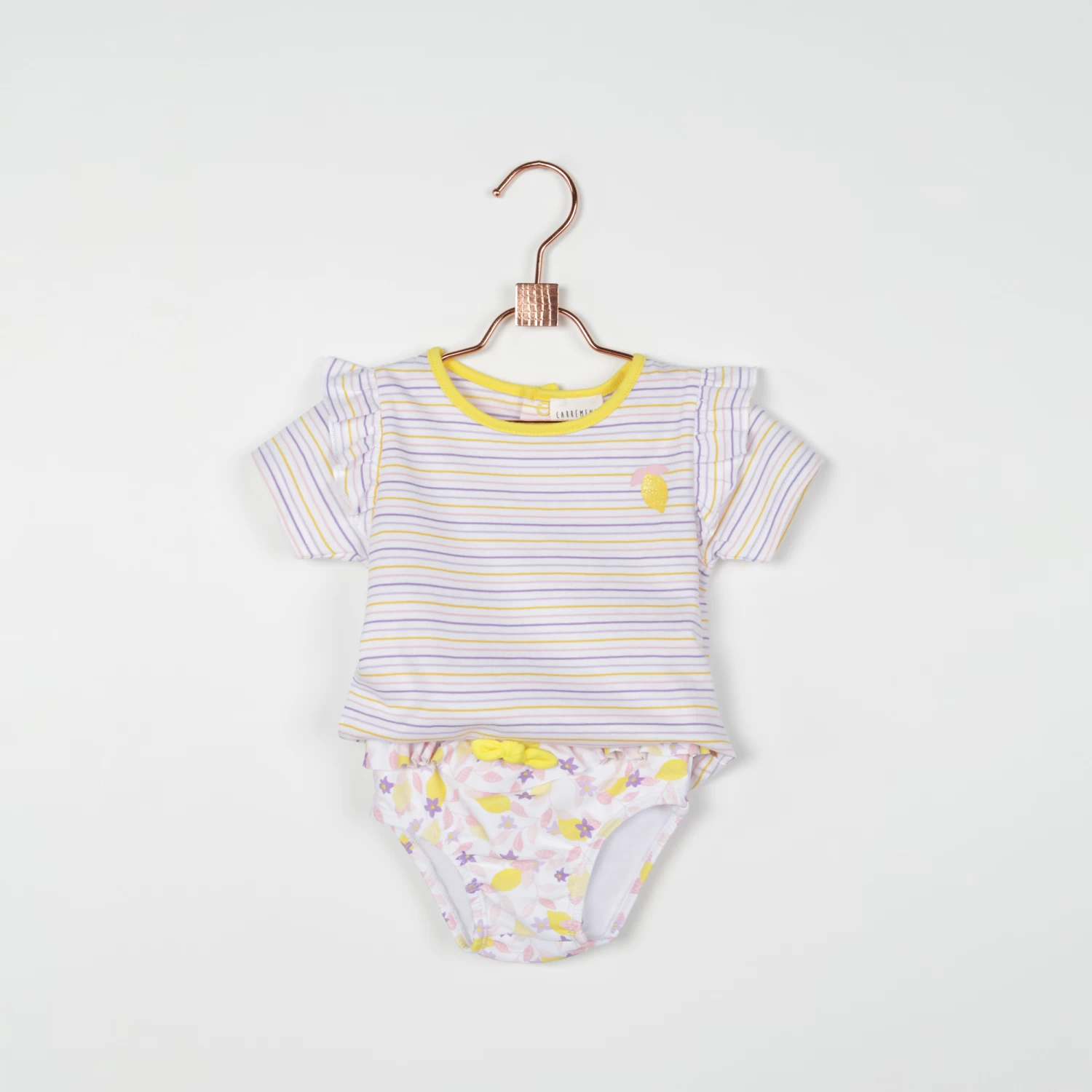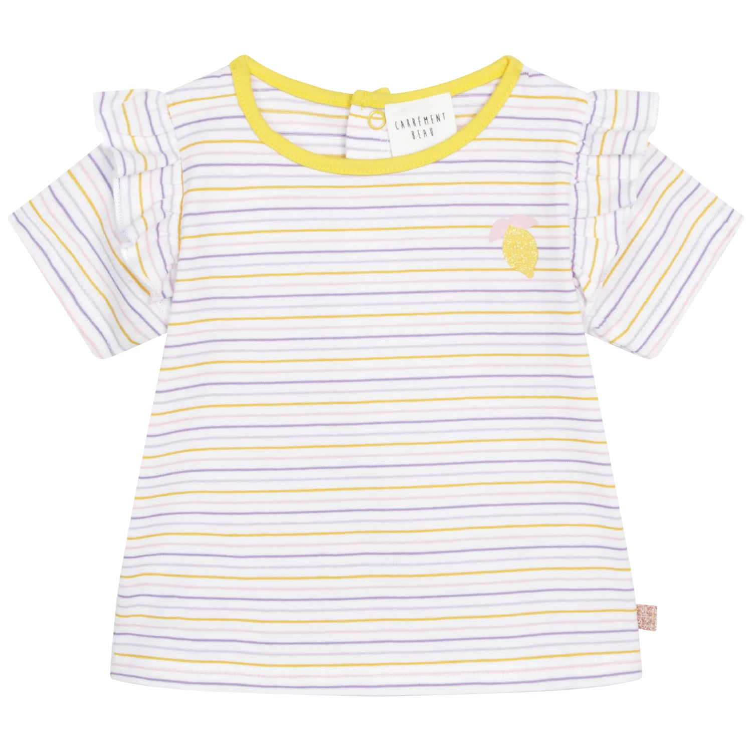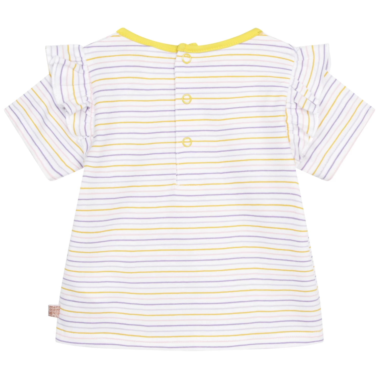 Confectionné en coton issu de l’agriculture biologique, ce T-shirt à rayures se pare de ravissants volants au niveau des emmanchures. La fermeture pressionnée dans le dos est idéale pour habiller facilement les plus jeunes. Un imprimé citron pailleté orne la poitrine.