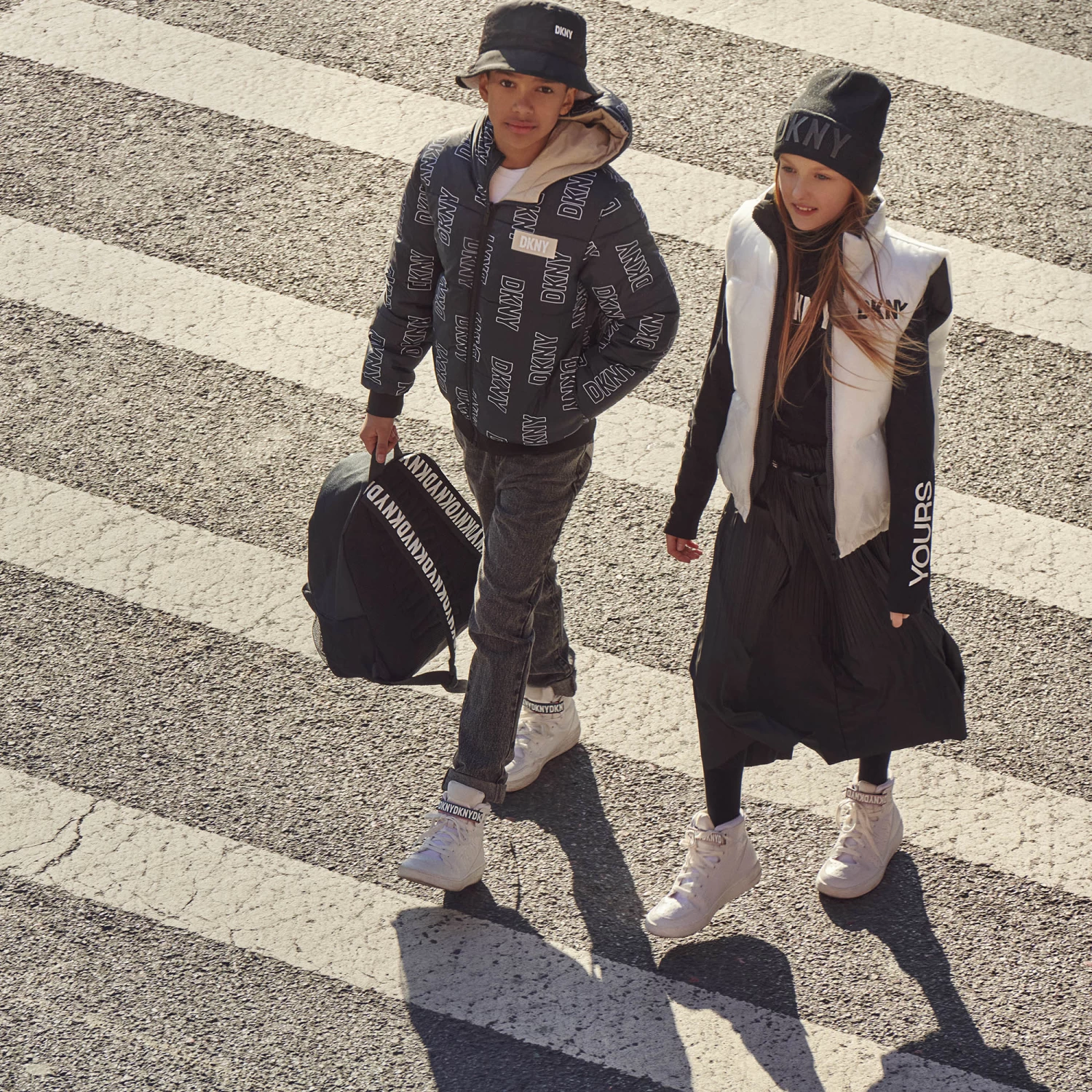Ce bob DKNY se combine à l’infini grâce à sa réversibilité. L’une de ses faces est unie et rehaussée du logo DKNY contrastant. L’autre est en polaire duveteuse, ornée d’une étiquette effet gomme siglée DKNY. Ce modèle est doublé pour plus de confort.