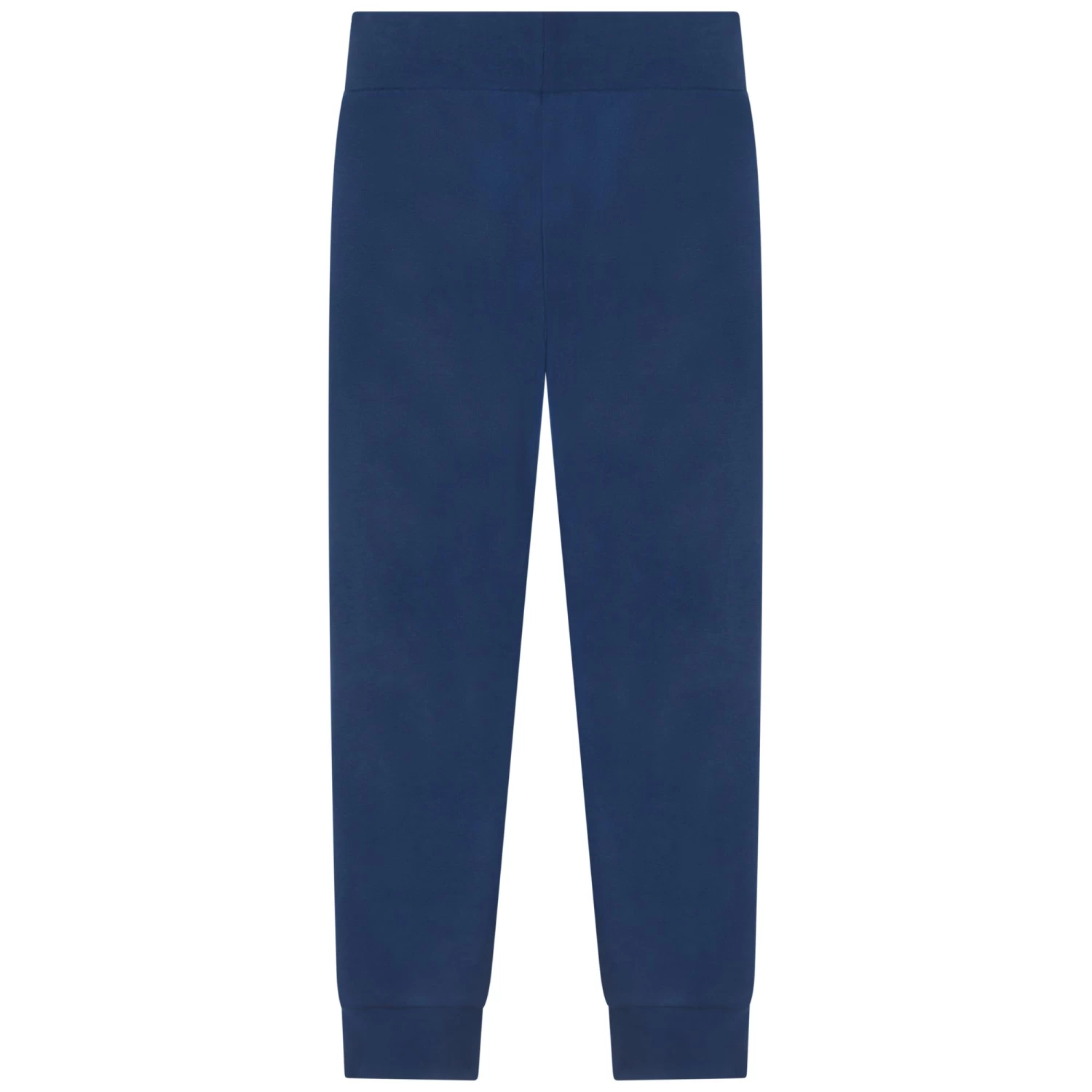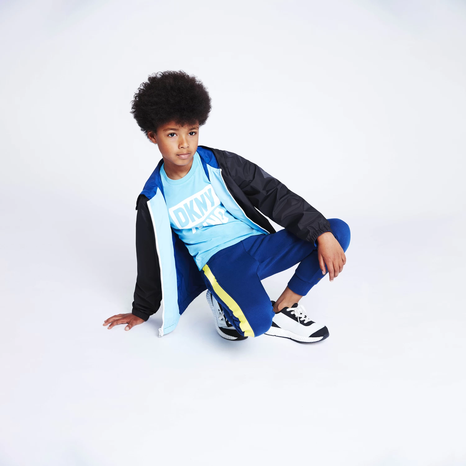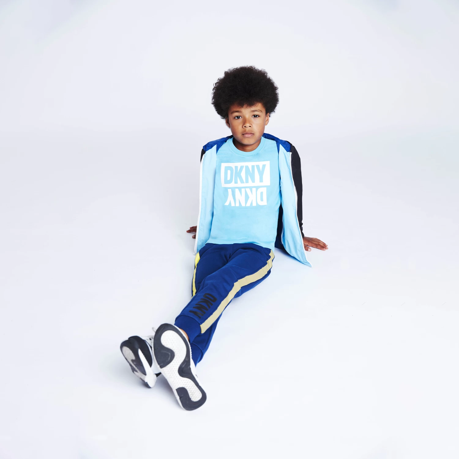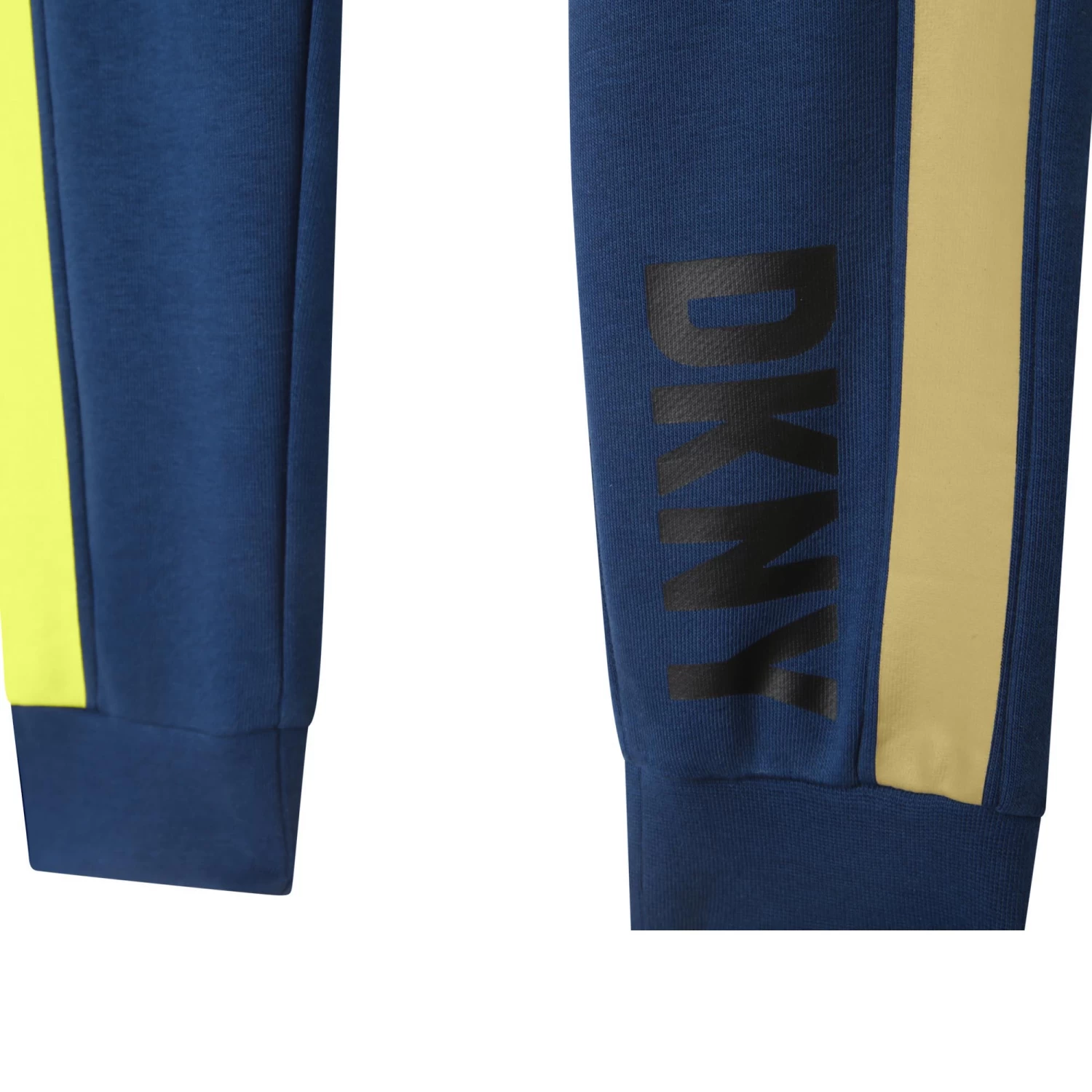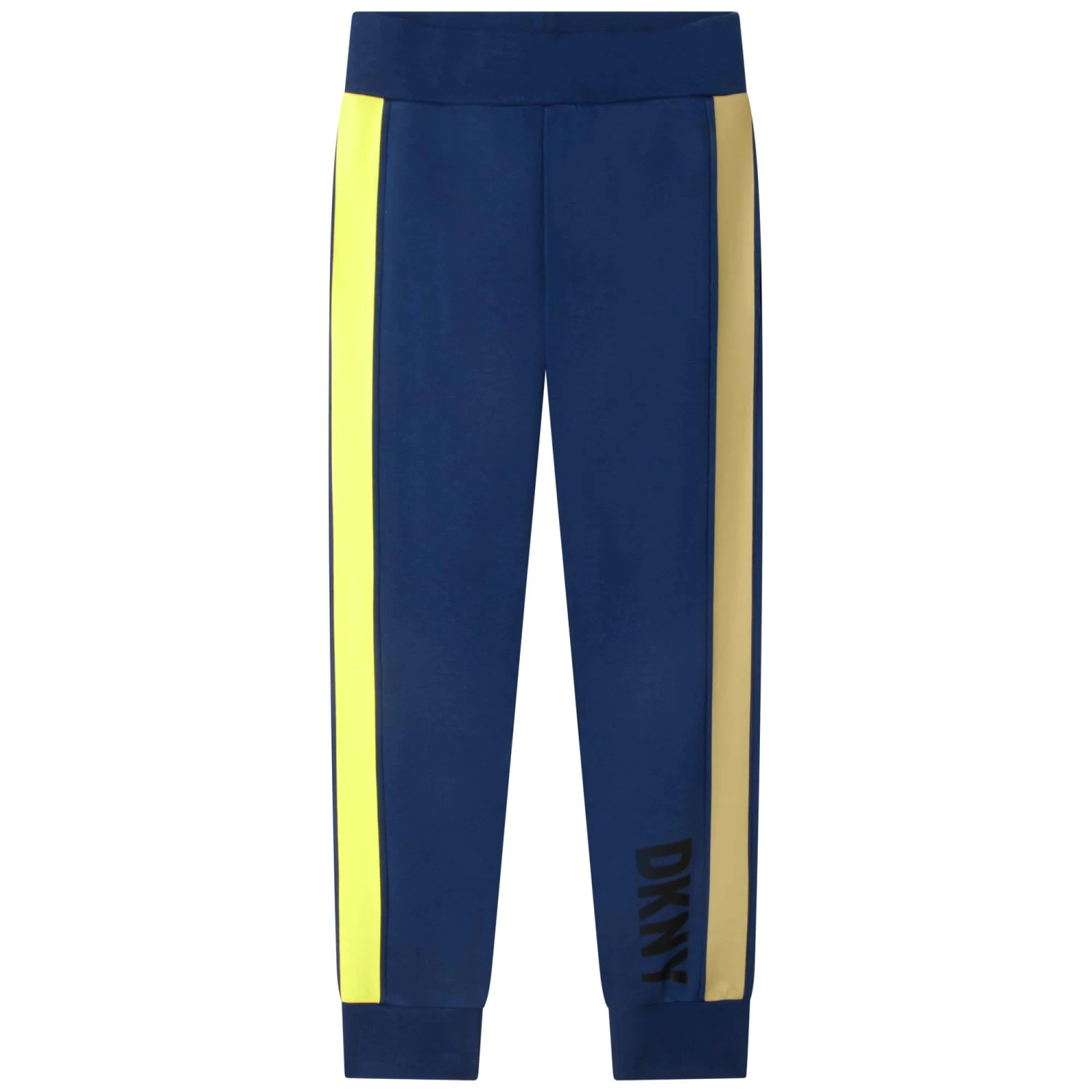 Ce pantalon de jogging en molleton est confectionné en coton majoritaire et dispose de deux poches. Sur les cÎtés se trouvent deux bandes en coloris contrasté. Le logo DKNY est imprimé en bas de la jambe.