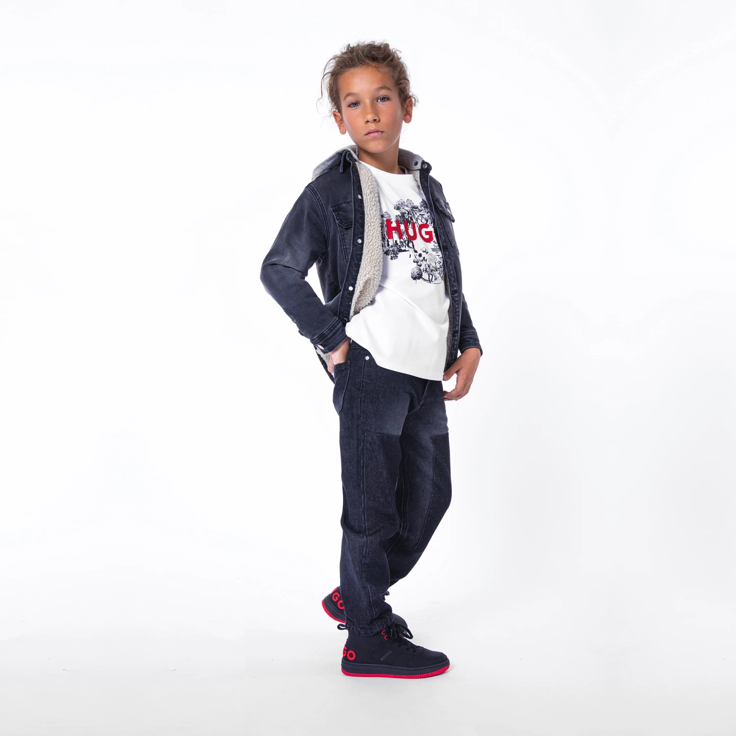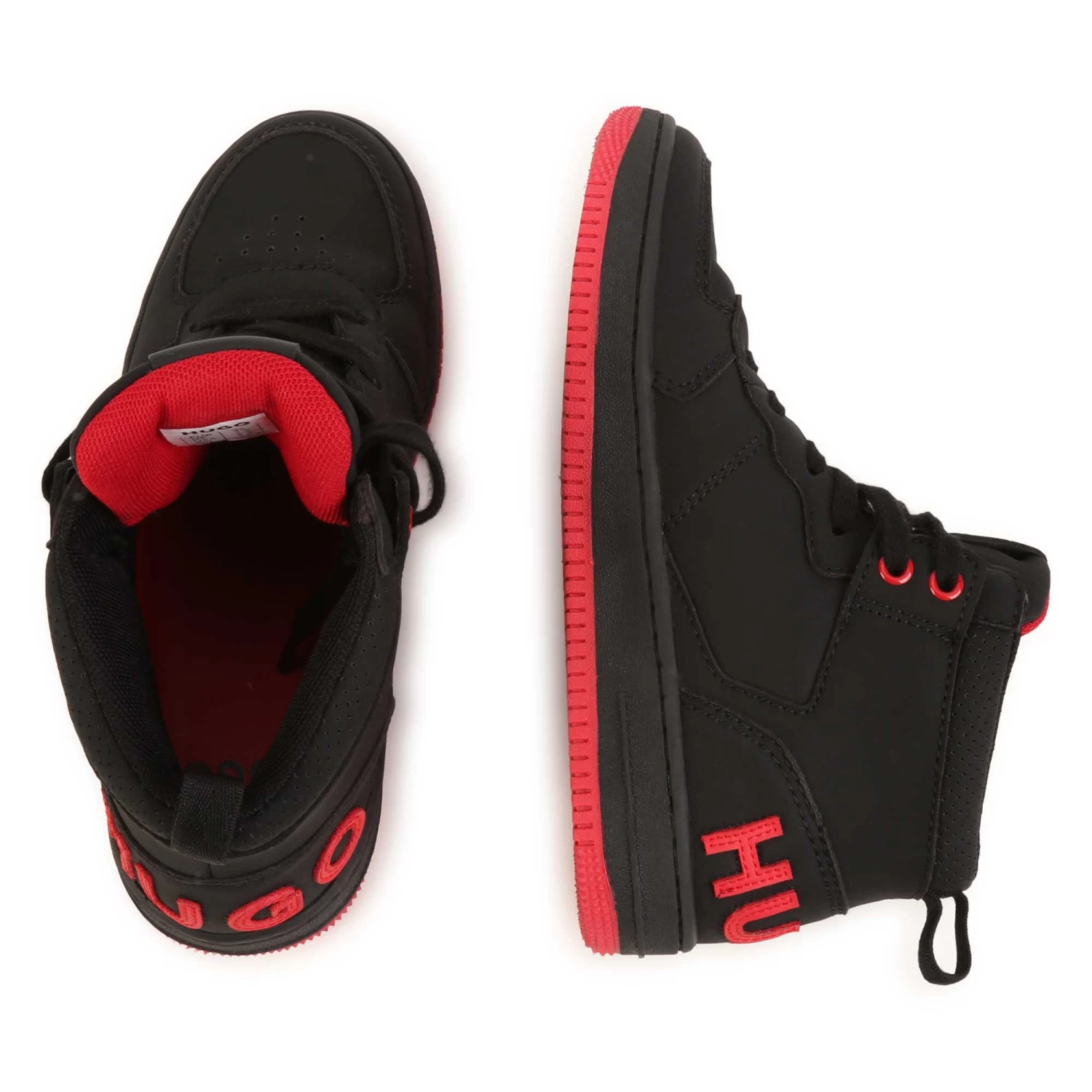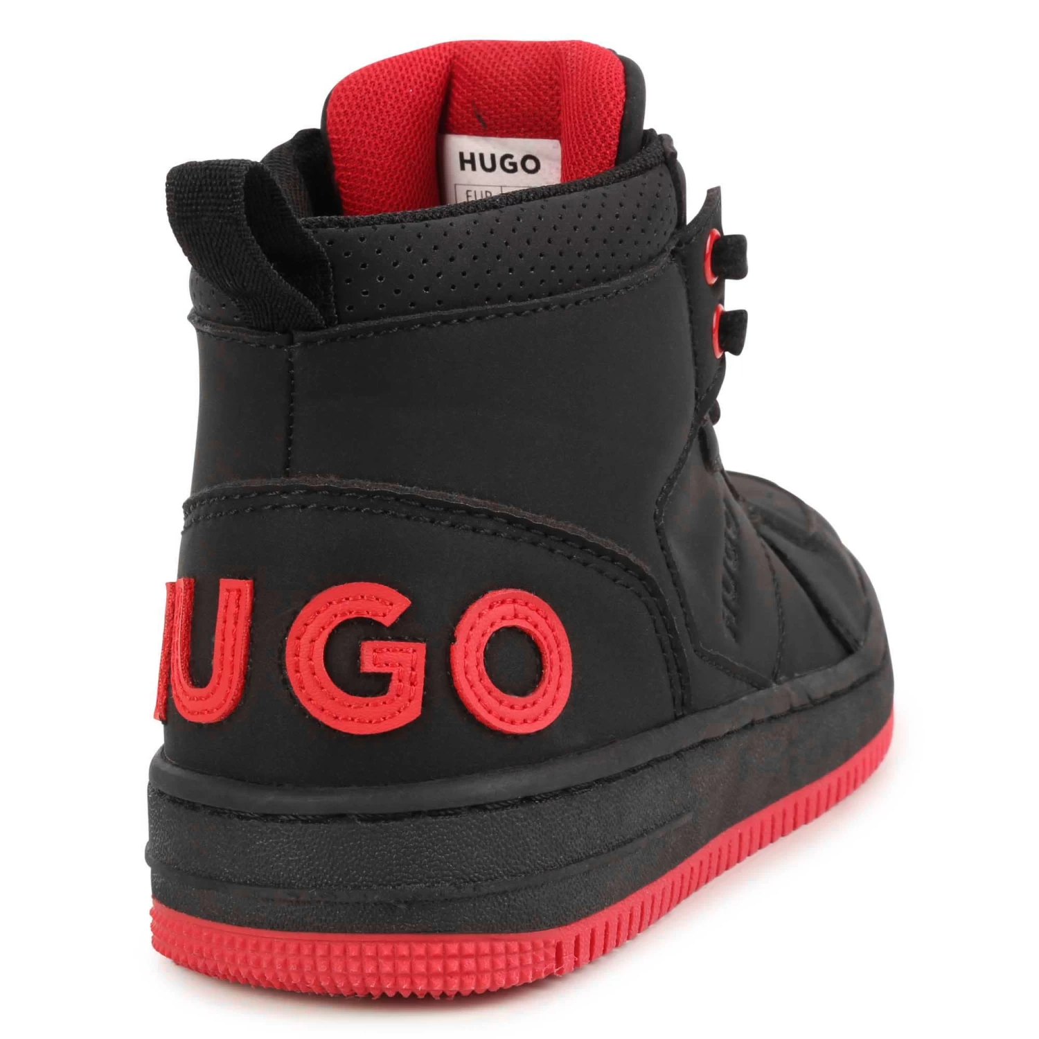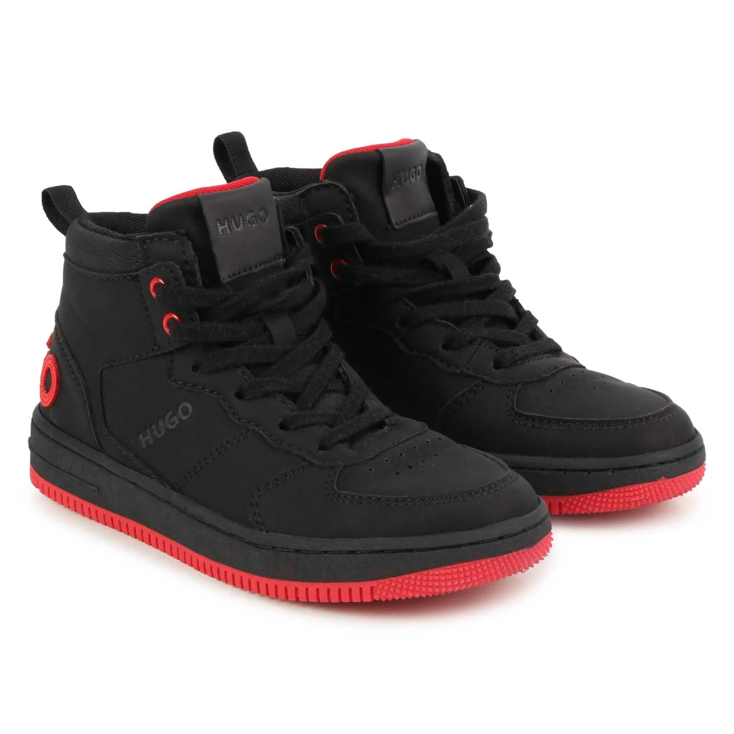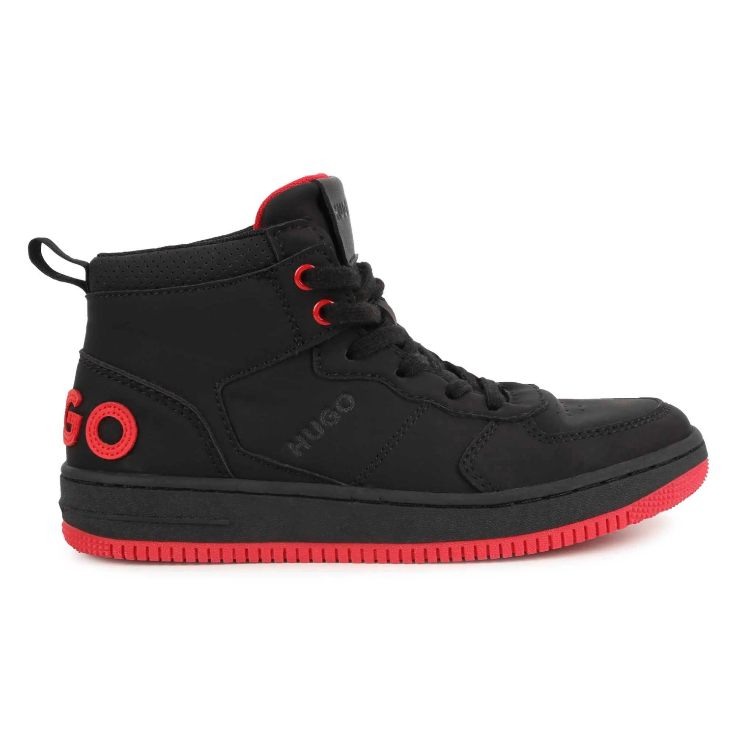 Ces baskets montantes HUGO sont confectionnées en toile à l’aspect velouté. Inspirées de la collection adulte, elles sont décorées du sigle HUGO contrastant à l’arrière. Des perforations égayent le haut de tige. Ce modèle est vendu en boîte à chaussures.