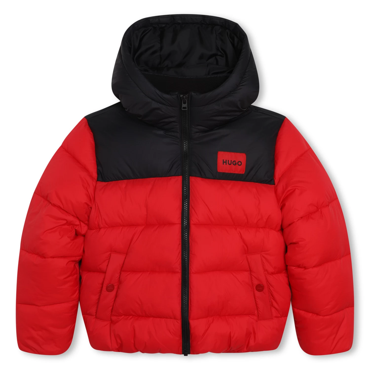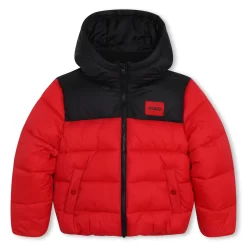 Cette doudoune à capuche HUGO affronte sans faille les intempéries grâce à sa matière déperlante. Le col montant associé à la capuche comporte une doublure en polaire. Ce modèle zippé arbore une étiquette HUGO tissée devant. Des pressions ferment les poches passepoilées.