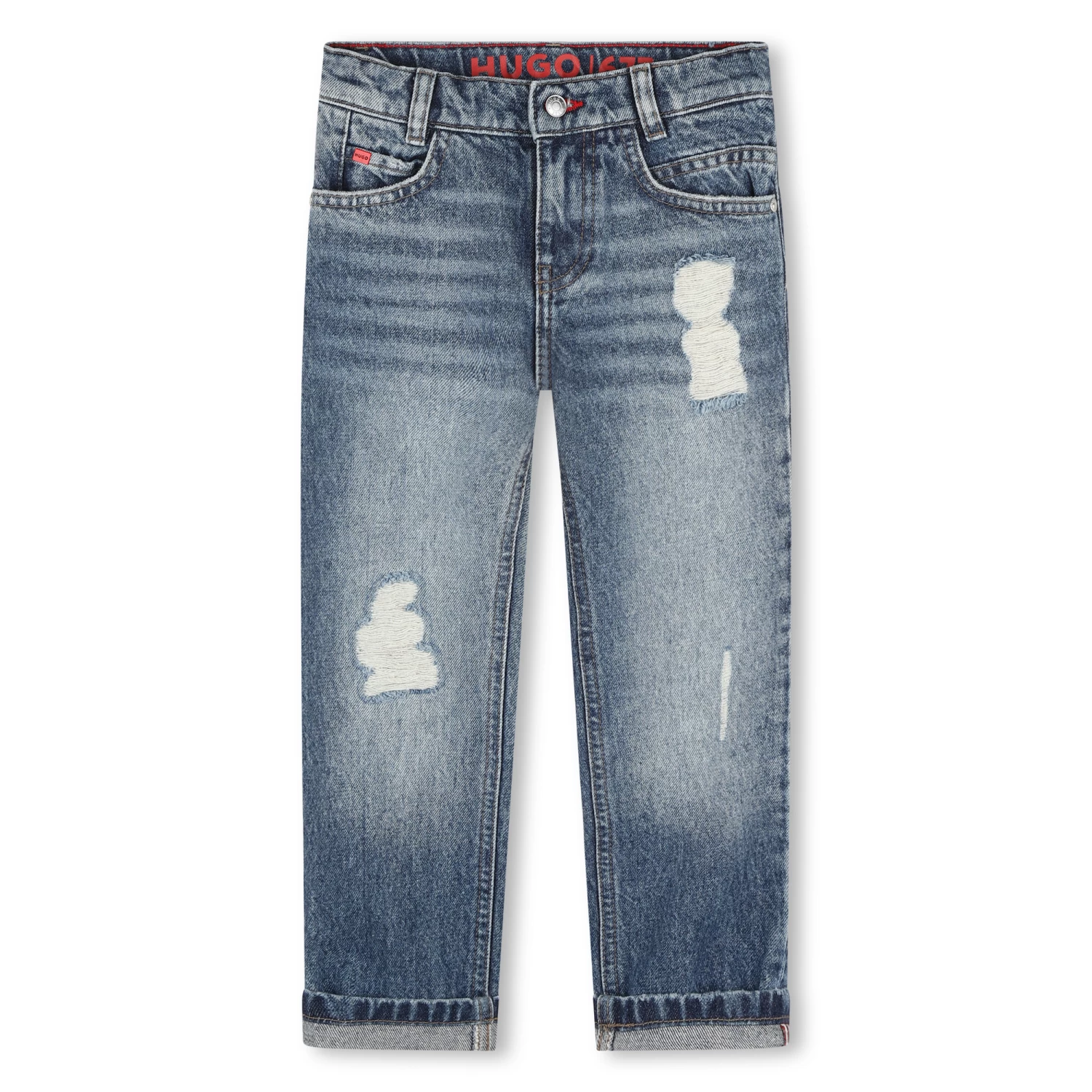 Ce jean HUGO est un indispensable avec sa coupe droite et ses abrasions sur le devant. Confectionné en coton, il se dote de 5 poches. La poche ticket comporte un rivet en métal siglé HUGO. Le dos est rehaussé d’un jacron en gomme également logoté HUGO.