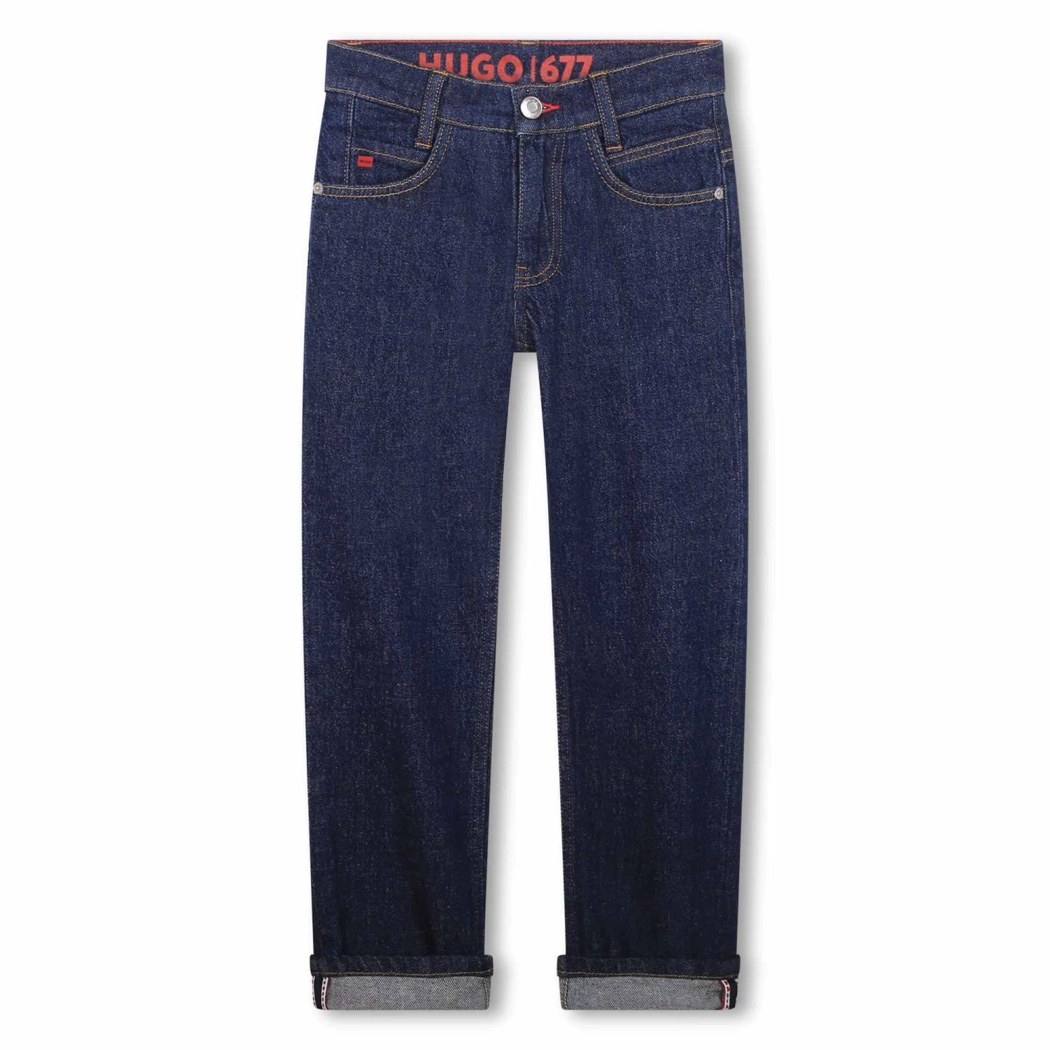 Confectionné en coton majoritaire, ce jean 5 poches HUGO se présente dans une coupe droite intemporelle, facile à porter. Un jacron en gomme contrastant siglé HUGO orne la ceinture au dos. Ce modèle comporte des surpiqûres contrastantes. DENIM REGULAR 677