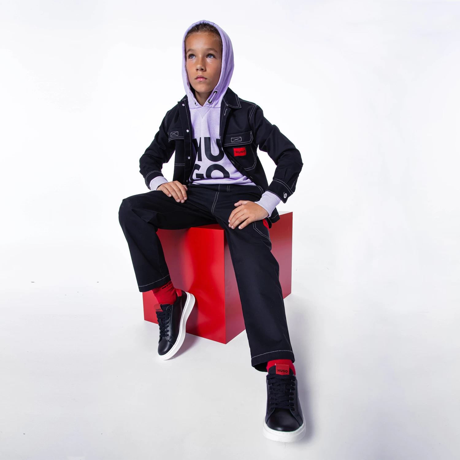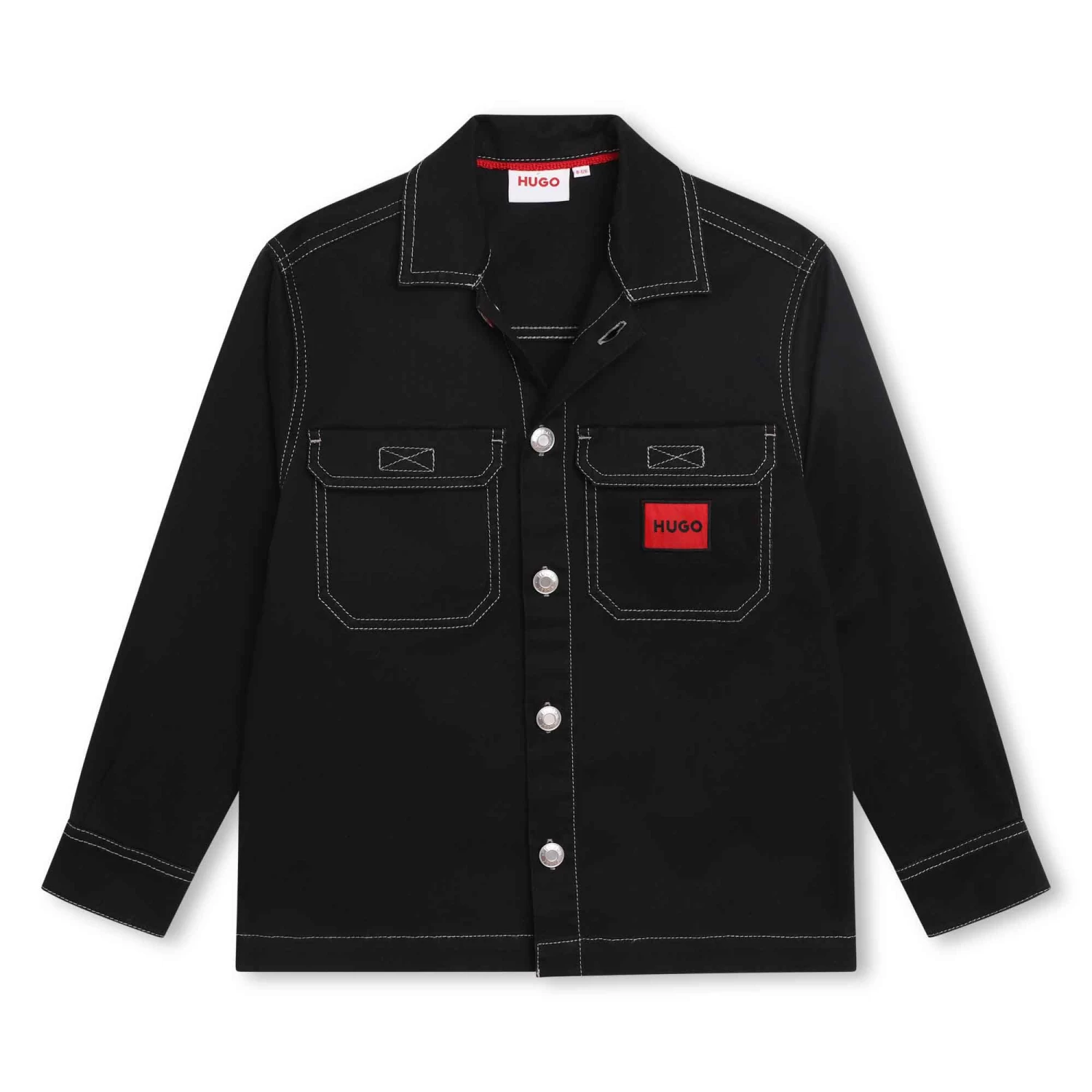 Cette surchemise en toile HUGO est majoritairement confectionnée en coton. Agrémentée de surpiqûres contrastées, elle affiche une étiquette HUGO sur une des poches poitrine plaquées à rabat. Des boutons métalliques embossés HUGO JEANS ferment ce modèle devant et aux poignets.