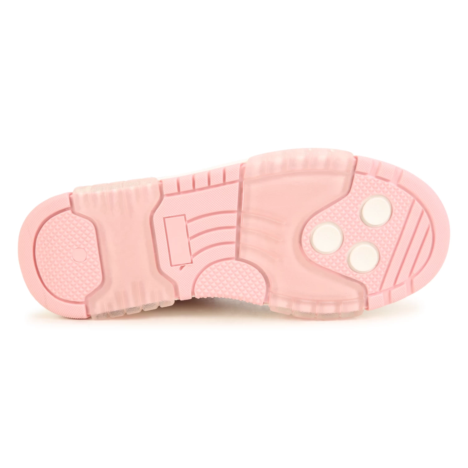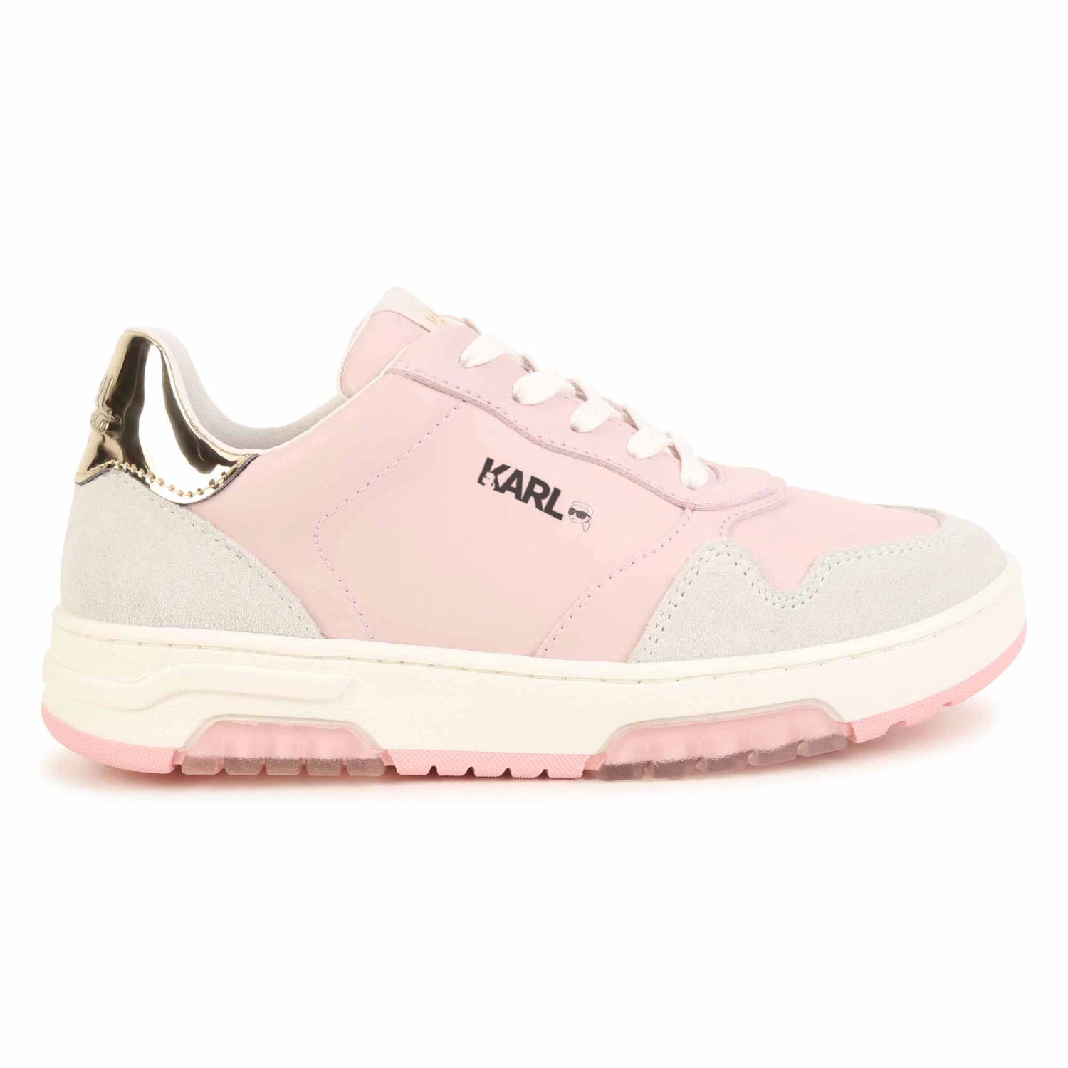Ces baskets basses à lacets KARL LAGERFELD KIDS sont conçues en croûte de velours et cuir de vachette, avec un tannage minéral. Elles sont agrémentées d’un empiècement métallisé et de parties translucides au niveau de la semelle extérieure. Contient des parties non textiles d’origine animale.