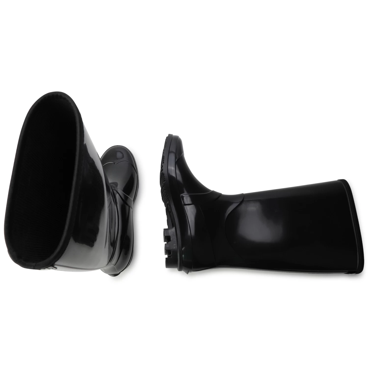 Ces bottes de pluie hautes permettent de garder les petits pieds bien au sec. Un badge en gomme KARL LAGERFELD KIDS se trouve sur le côté extérieur. La doublure et la semelle intérieure sont confectionnées en textile. Elles sont vendues dans une boite.