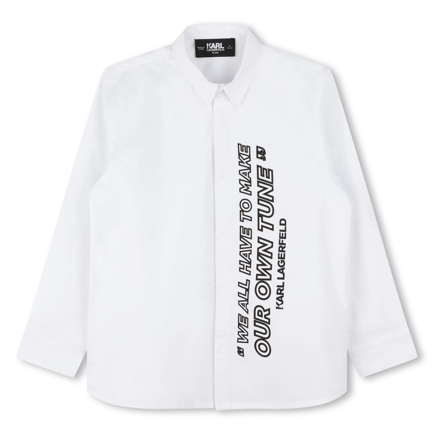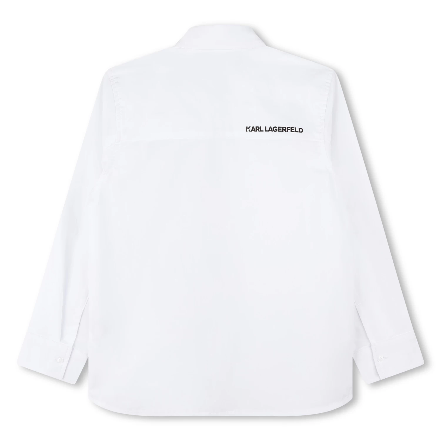 Cette chemise de cérémonie Karl Lagerfeld Kids est confectionnée en popeline 100 % coton. Le pan gauche affiche des imprimés Karl Lagerfeld. Des boutons dissimulés sous une patte ferment avec raffinement ce modèle à manches longues.