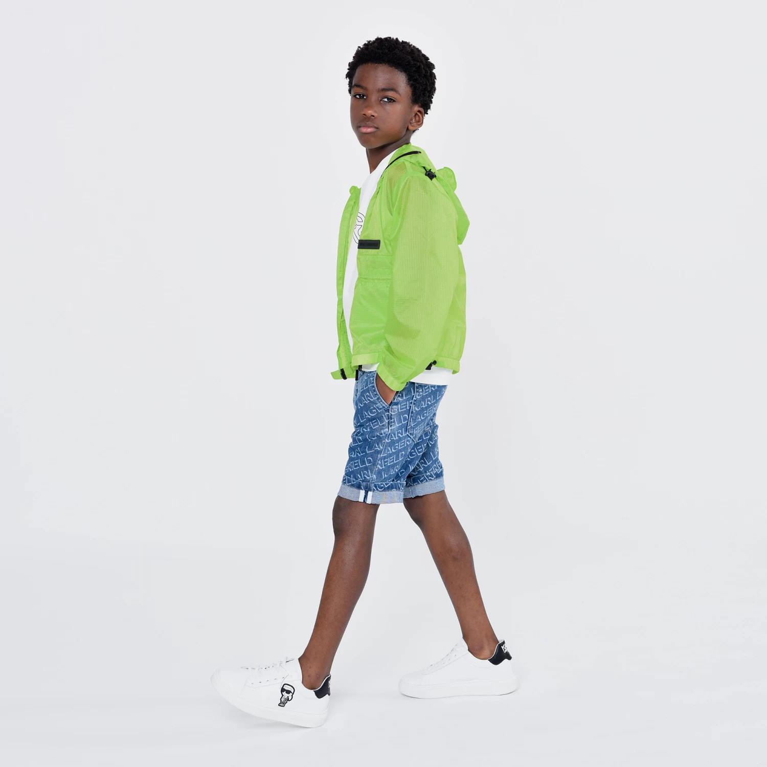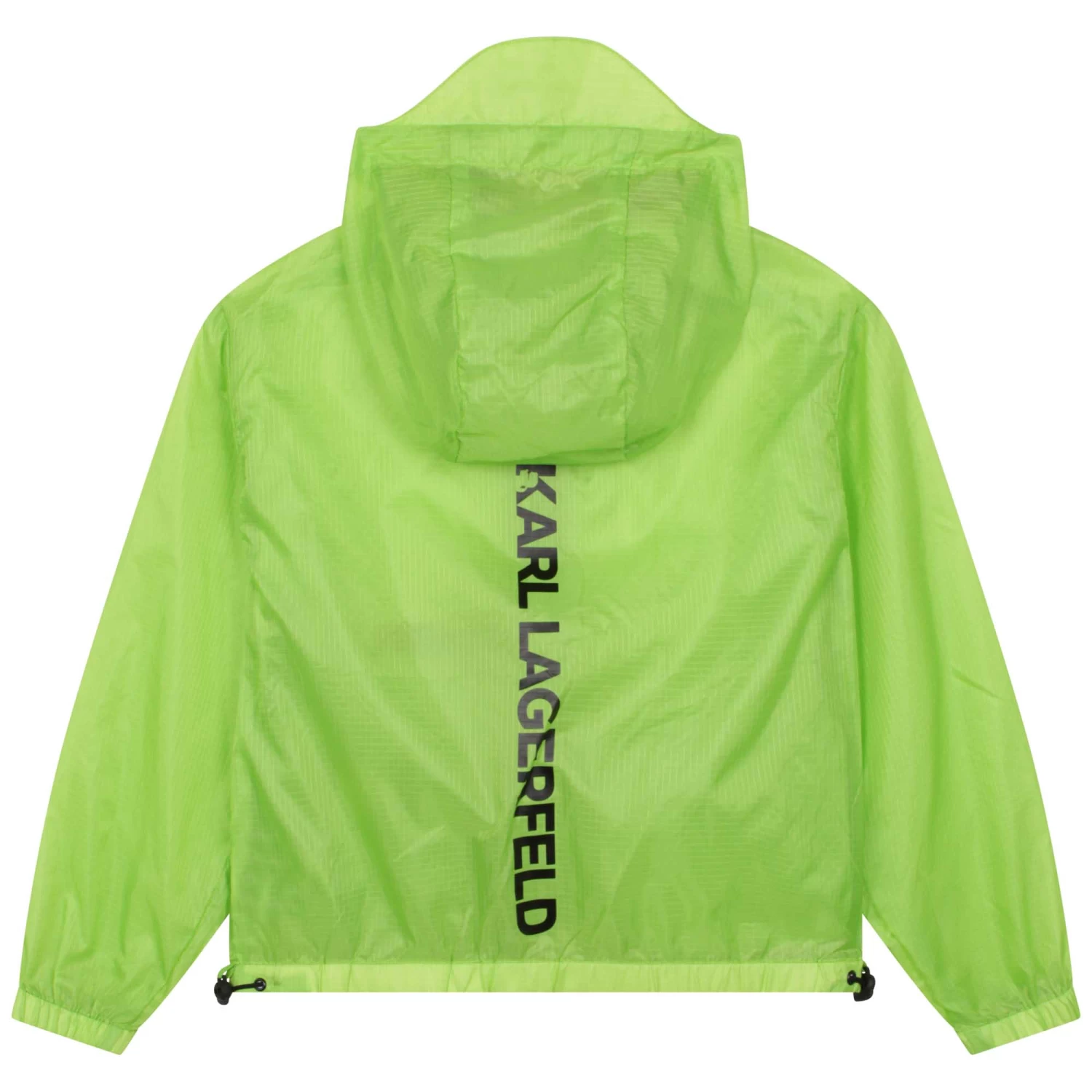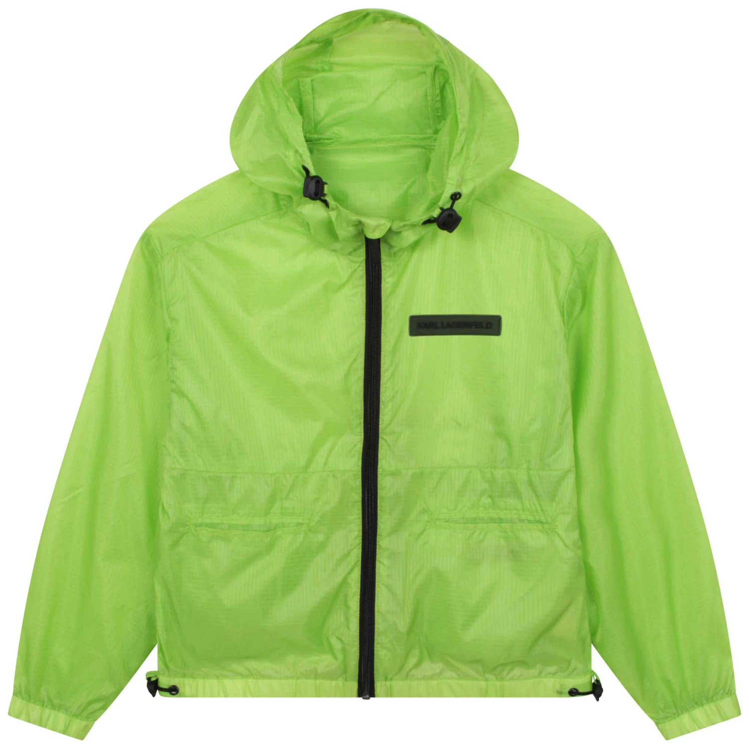 100% polyamide, ce coupe-vent Karl Lagerfeld Kids est totalement déperlant. Muni d’une capuche et de stop cordons, ce modèle présente une coupe courte et une fermeture zippée. Il est souligné d’une étiquette en silicone siglée sur le devant et du logo imprimé au dos.
