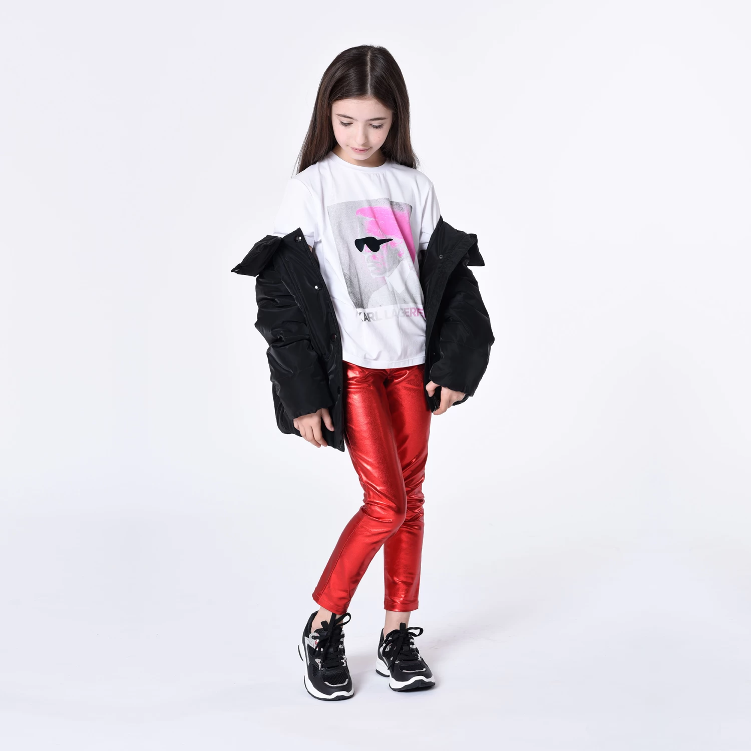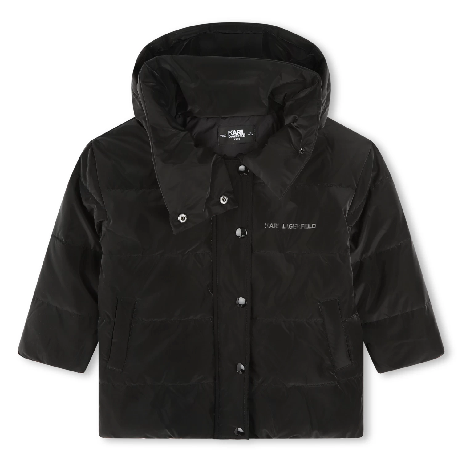 Cette doudoune Karl Lagerfeld Kids est confectionnée en toile enduite. Fermée par un zip et des boutons pression, elle arbore le logo Karl Lagerfeld imprimé sur la poitrine. Ce modÚle muni de poches raglan affiche un imprimé 21 rue St Guillaume sur la doublure.