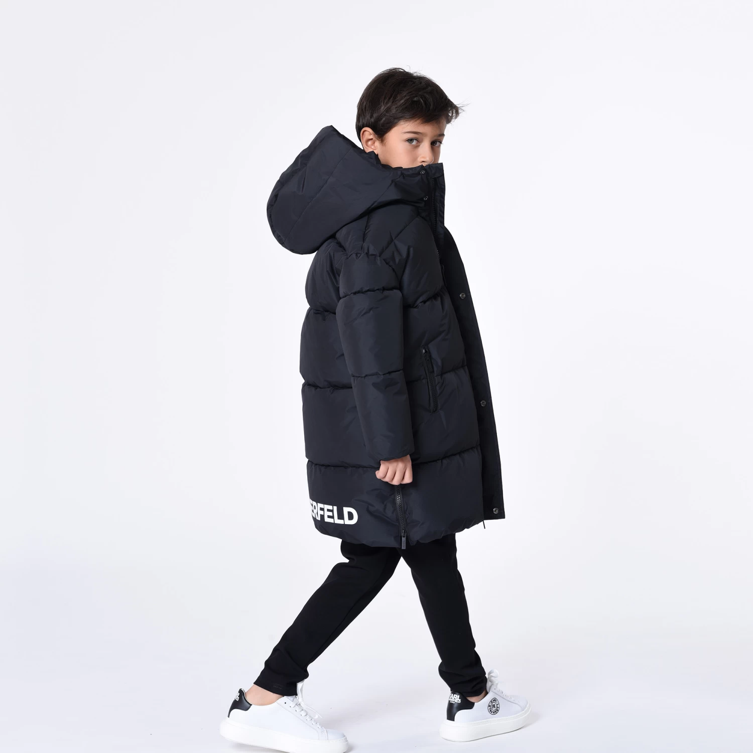 Cette doudoune longue est déperlante. Ce modèle confectionné en polyester dispose d’une doublure siglée, d’une fermeture zippée et de deux poches. Le logo KARL LAGERFELD KIDS est imprimé sur le devant et dans le dos.