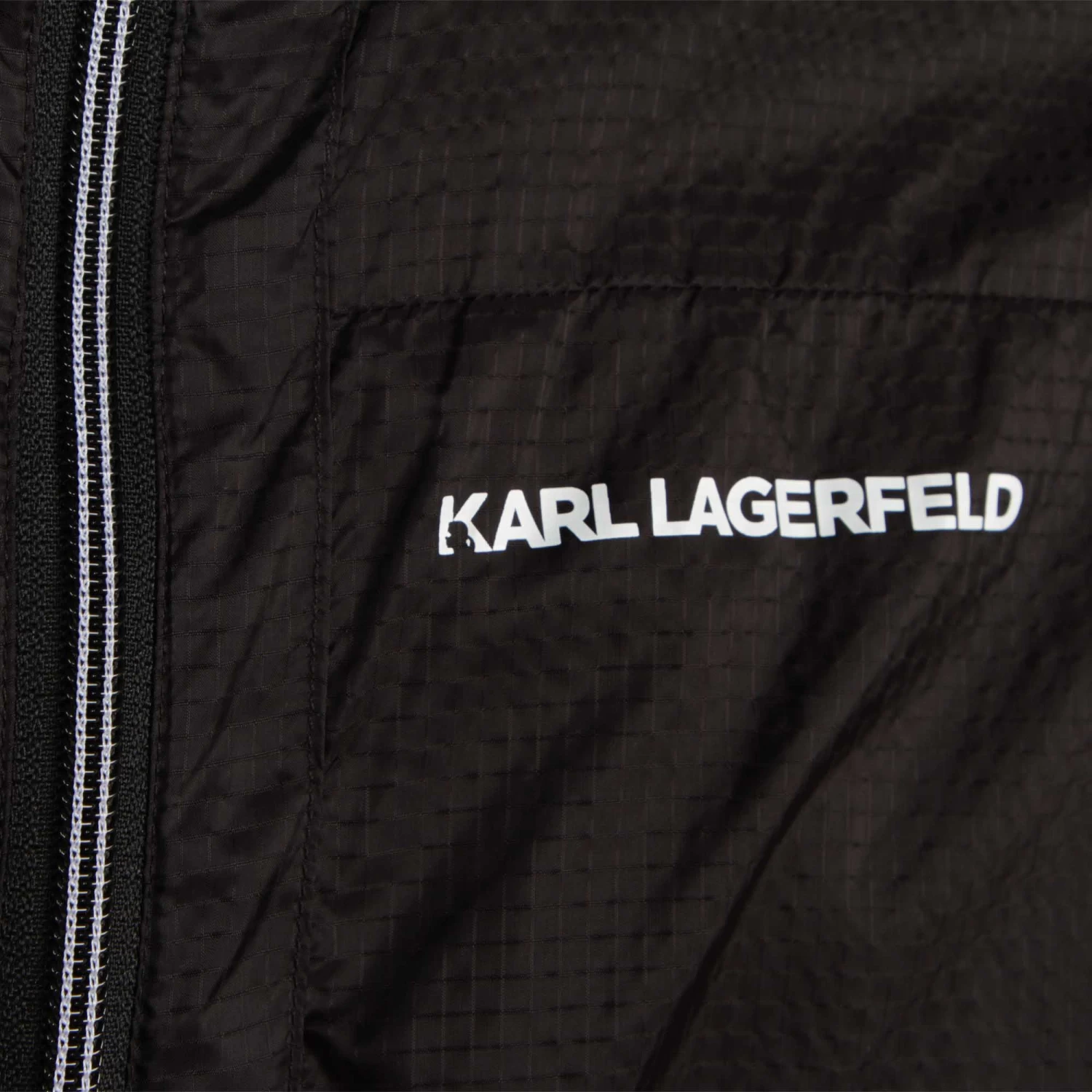 Cet imperméable KARL LAGERFELD KIDS est confectionné en matière déperlante à motifs quadrillés. Des cordons avec bloqueurs permettent de resserrer les poignets et la base. Des fronces apportent un effet de volume sous la découpe devant et sous la bande siglée KARL LAGERFELD au dos.