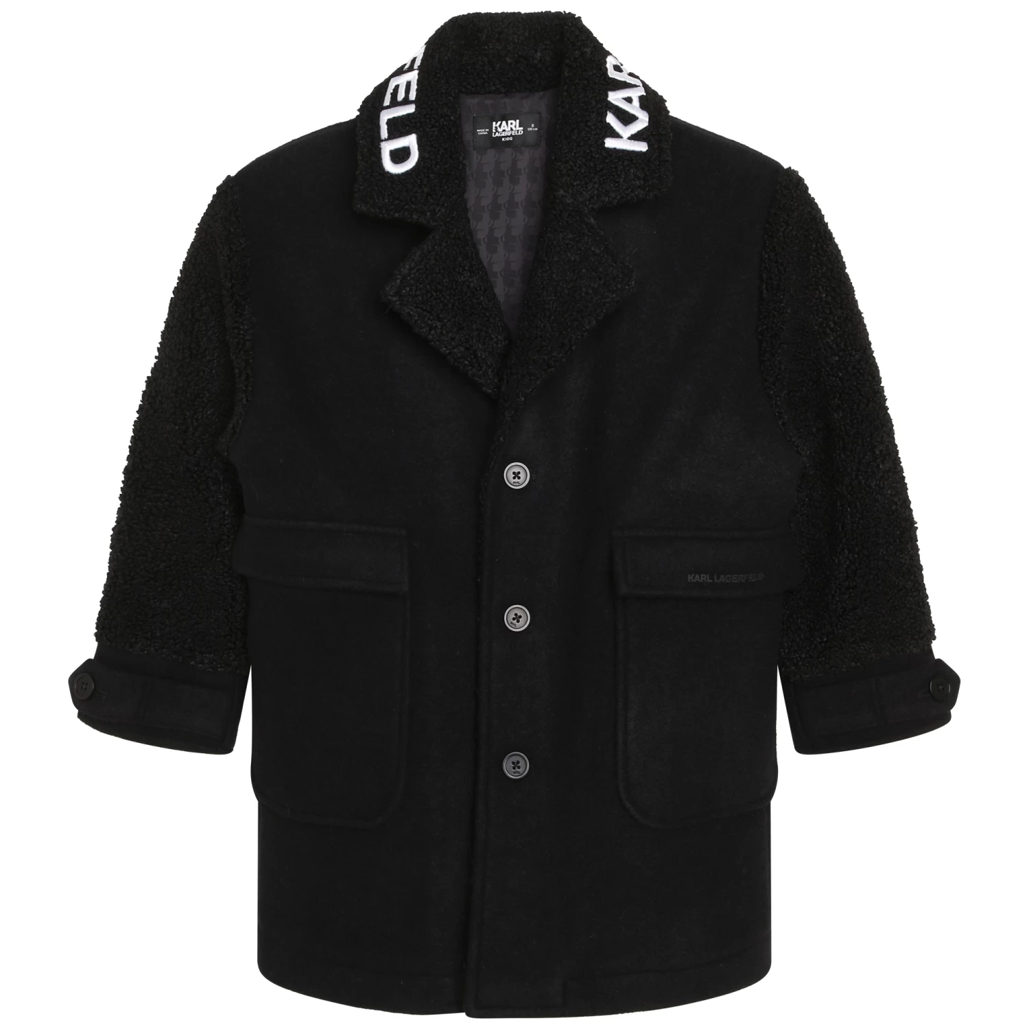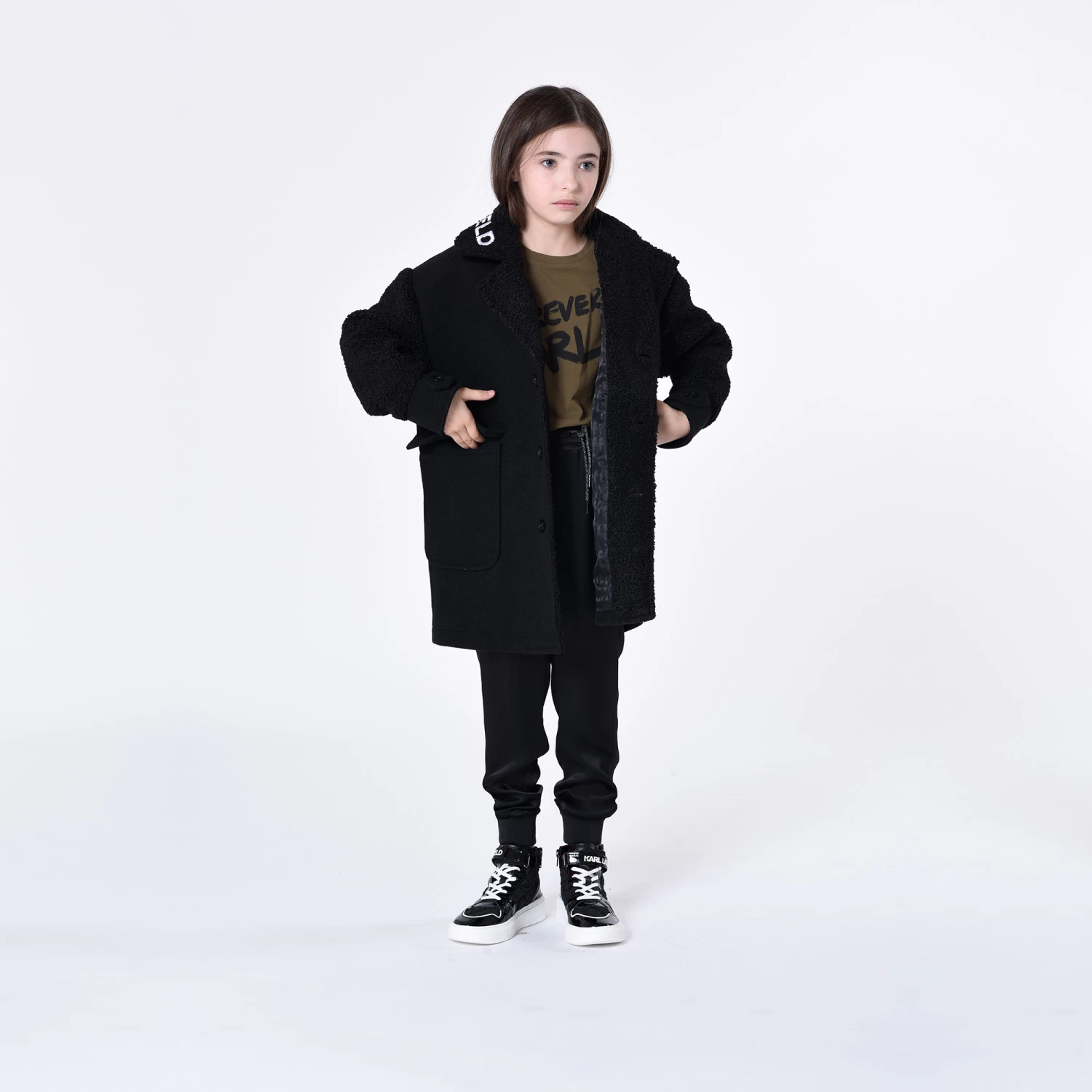 Ce manteau long KARL LAGERFELD KIDS mixe les matières. Le col à revers cranté et les manches en matière moutonnée contrastent avec le corps en lainage. Ce dernier et les poignets avec pattes boutonnées sont confectionnés avec 30 % de laine.