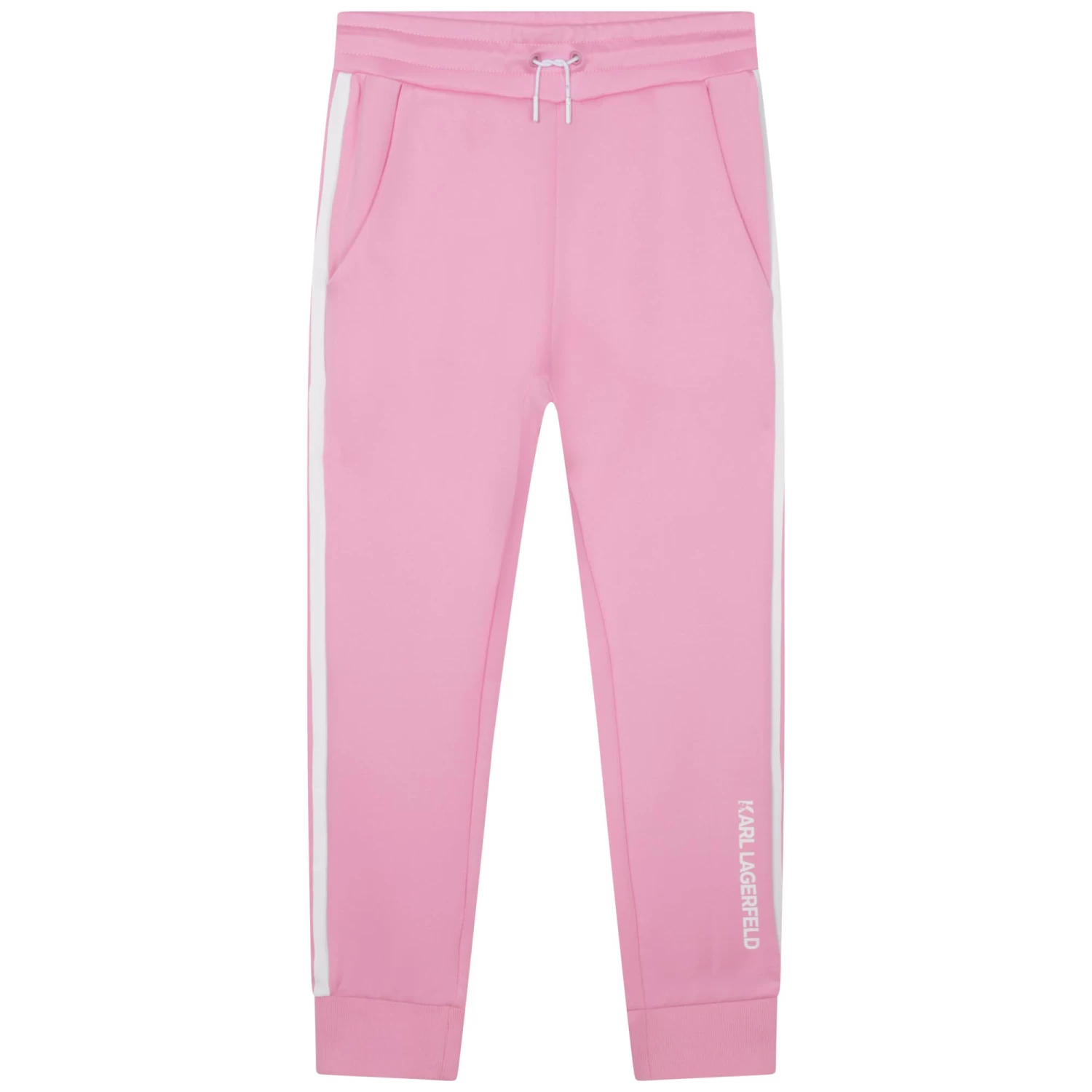 Ce pantalon de jogging KARL LAGERFELD KIDS arbore des bandes latérales contrastées. Doté de poches italiennes devant, ce modèle possède une taille élastiquée associée à un cordon de serrage. Le logo KARL LAGERFELD égaye le bas de la jambe gauche, devant.