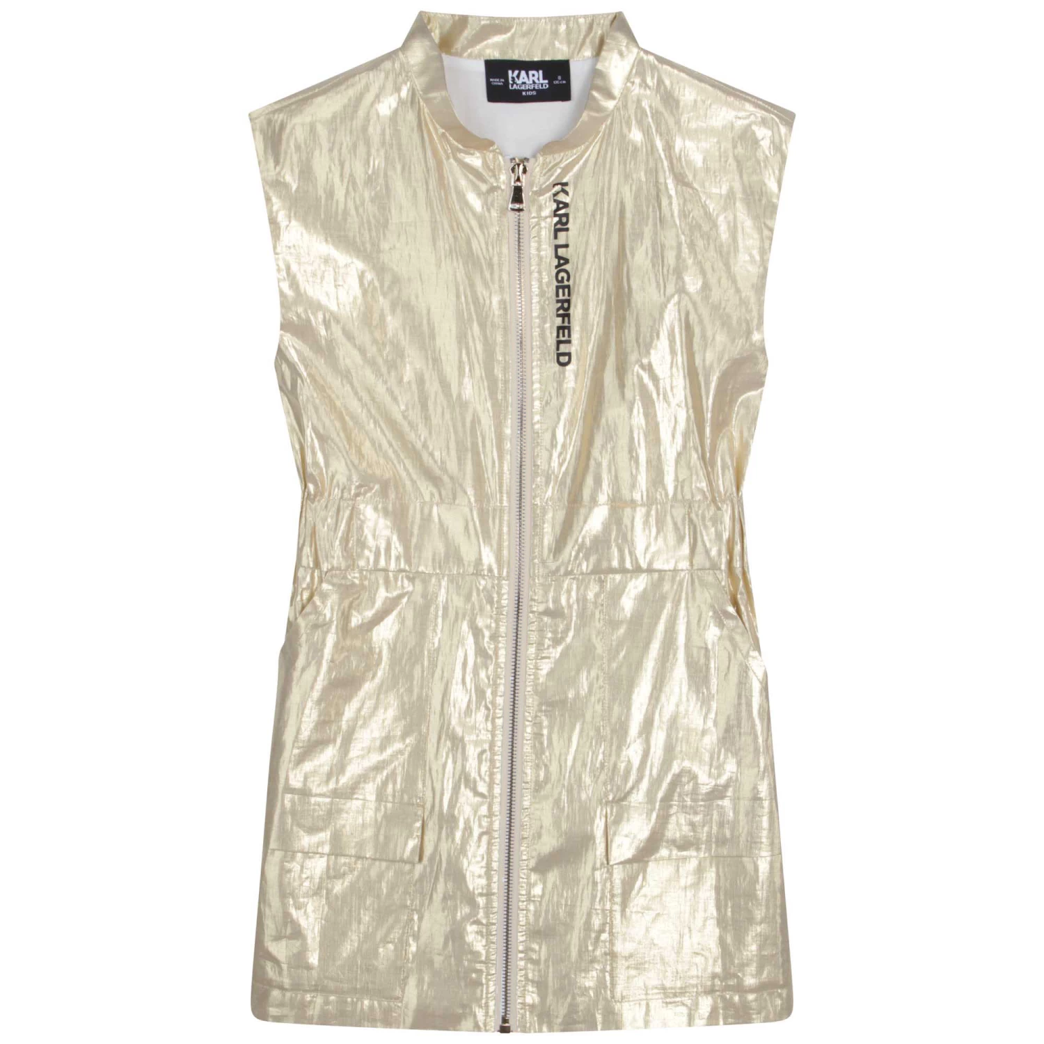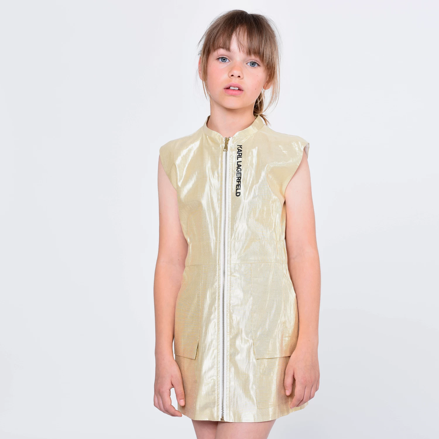 Cette robe KARL LAGERFELD KIDS est très élégante avec son revêtement brillant. Doublée de viscose légère, elle se ferme à l’aide d’un zip devant. La taille est froncée au dos. Ce modèle est confectionné en coton mélangé.