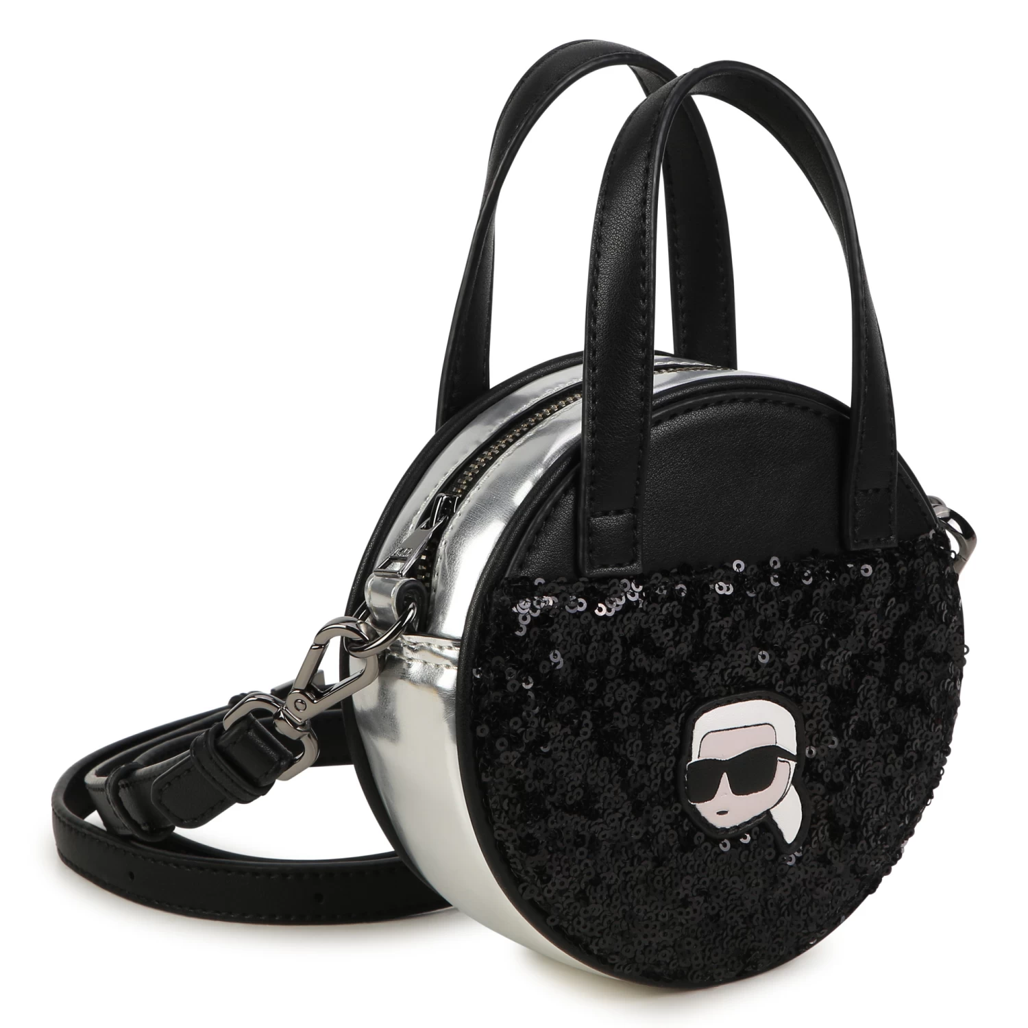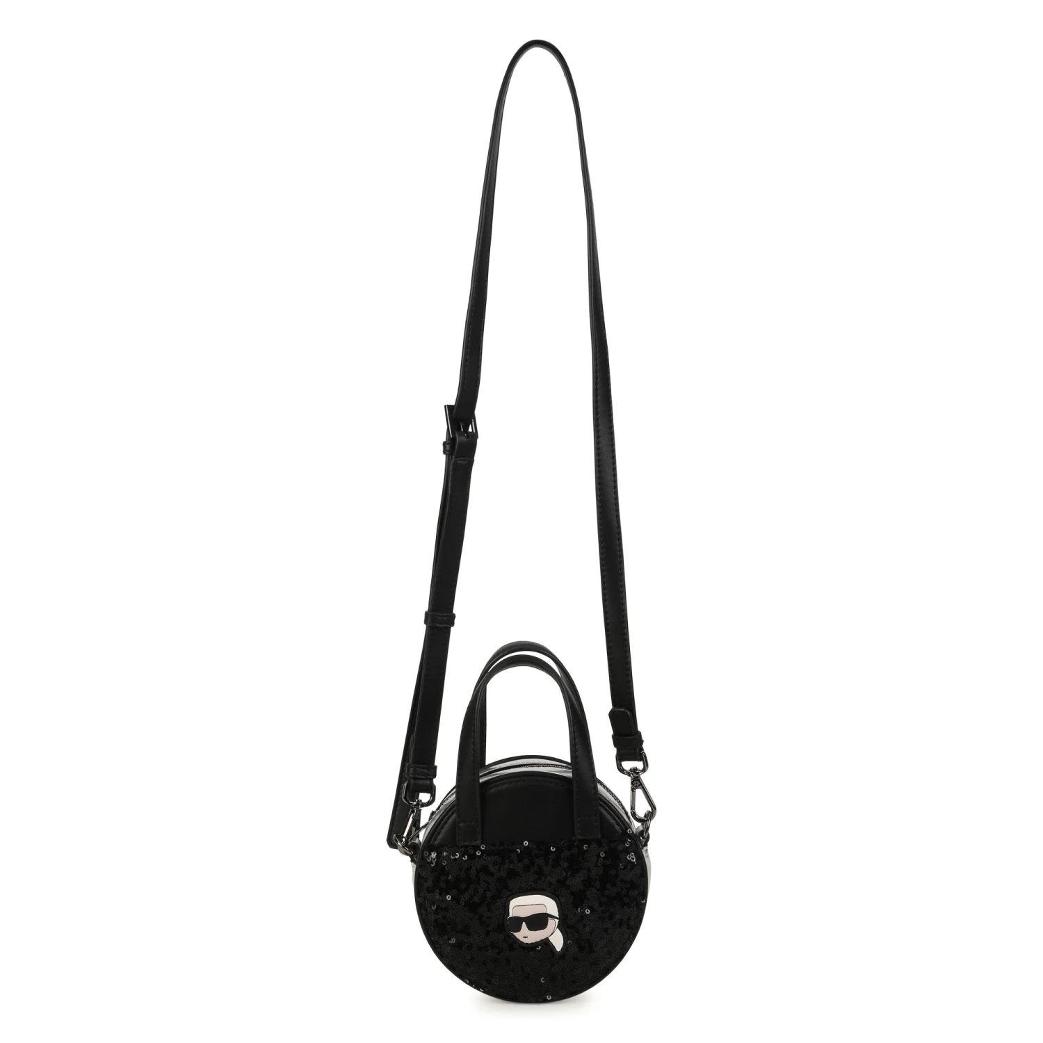 Tendance avec sa forme ronde, ce sac à main KARL LAGERFELD KIDS se démarque par ses sequins et son badge Karl. Il dote d’une bandoulière ajustable et amovible, ainsi que de deux poignées. Dimensions : 15 x 5 cm.