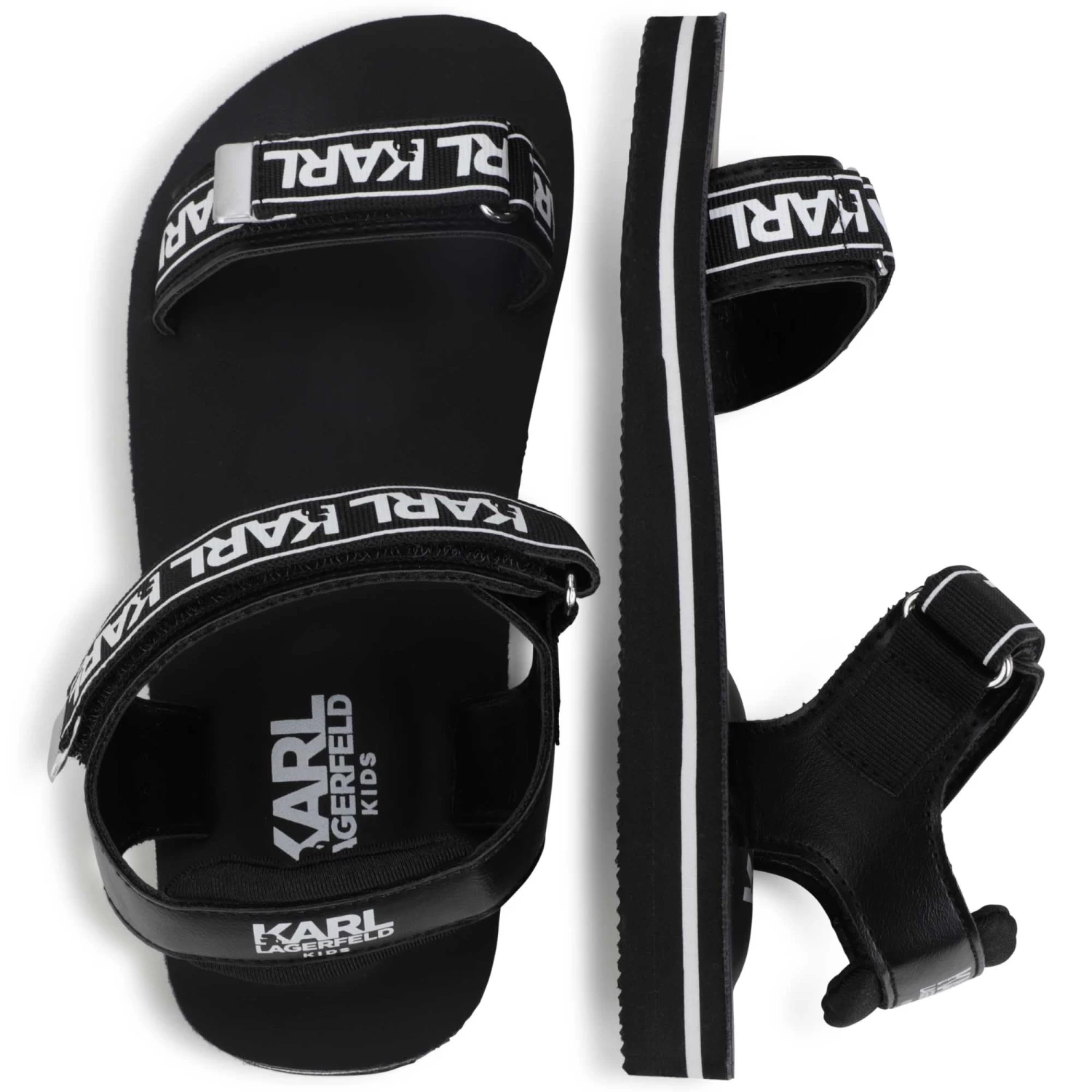 Constituées de brides scratchées dessus et à la cheville, ces sandales KARL LAGERFELD KIDS maintiennent bien le pied. Le confort est assuré par l’empiècement rembourré à l’arrière de la cheville. Ce modèle inspiré de la collection adulte est vendu en boîte à chaussures.